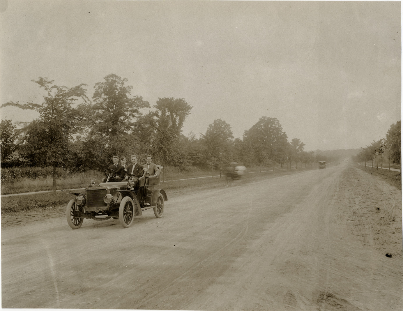 Favorite this☆ Motorists in automobile Description: View of four men in car, traveling along dirt road. Stamped on back: "F. Ed. Spooner, and Chas. S. Wells. Motor News, Motor Photos, Motor Adv, 1536 B'way, New York. Tel 6536-38th St." Handwritten on back: "Automobiles--Unidentified." Details Resource ID: na003726 Creator: Spooner & Wells Subject: Automobiles Automobile drivers Dirt roads Photographers--New York (State)--New York Photographic prints Date Issued: Unknown year Format: 1 photographic print ; 7.25 x 9.25 in. Member of: National Automotive History Collection Lazarnick Collection Filing Location: Automobiles--Unidentified #1 Rights: Physical rights are retained by DPL. Copyright is retained in accordance with U.S. copyright laws.