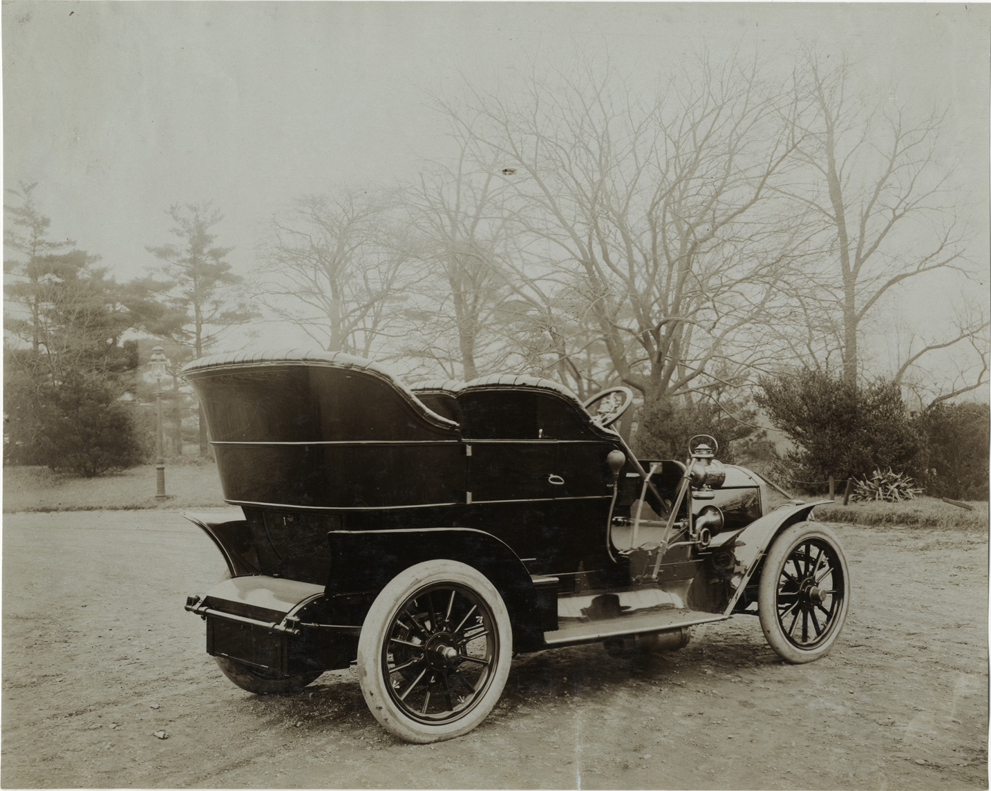 View of unidentified car. Stamped on back: "Photo by F. Ed. Spooner, 1536 B'way, telephone 6536-38th St., New York, N.Y." Handwritten on back: "Automobiles--Unidentified, 1906."