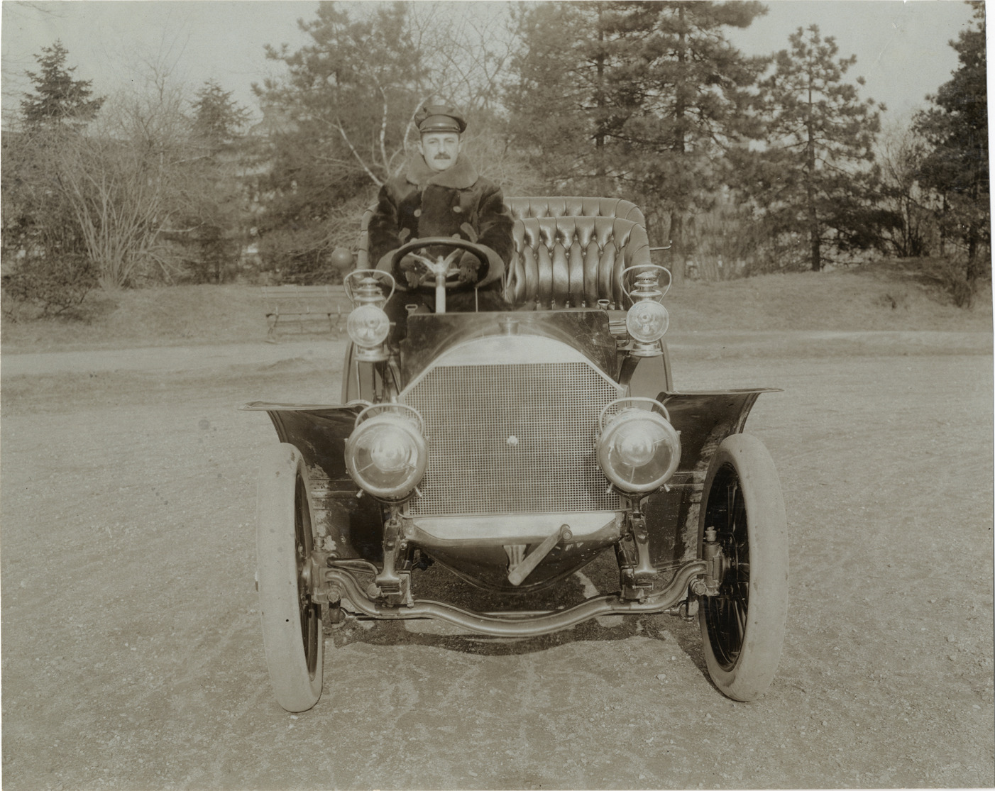 Favorite this☆ Automobile and driver Description: Front view of driver sitting in unidentified car. Stamped on back: "Photo by F. Ed. Spooner, 1536 B'way, telephone 6536-38th St., New York, N.Y." Handwritten on back: "Automobiles--Unidentified, 1906." Details Resource ID: na003745 Creator: Spooner, F. Ed. Subject: Automobiles Automobile drivers Photographers--New York (State)--New York Photographic prints Date Issued: 1906 Format: 1 photographic print ; 7.5 x 9.5 in. Member of: National Automotive History Collection Lazarnick Collection Filing Location: Automobiles--Unidentified #2 Rights: Physical rights are retained by DPL. Copyright is retained in accordance with U.S. copyright laws.