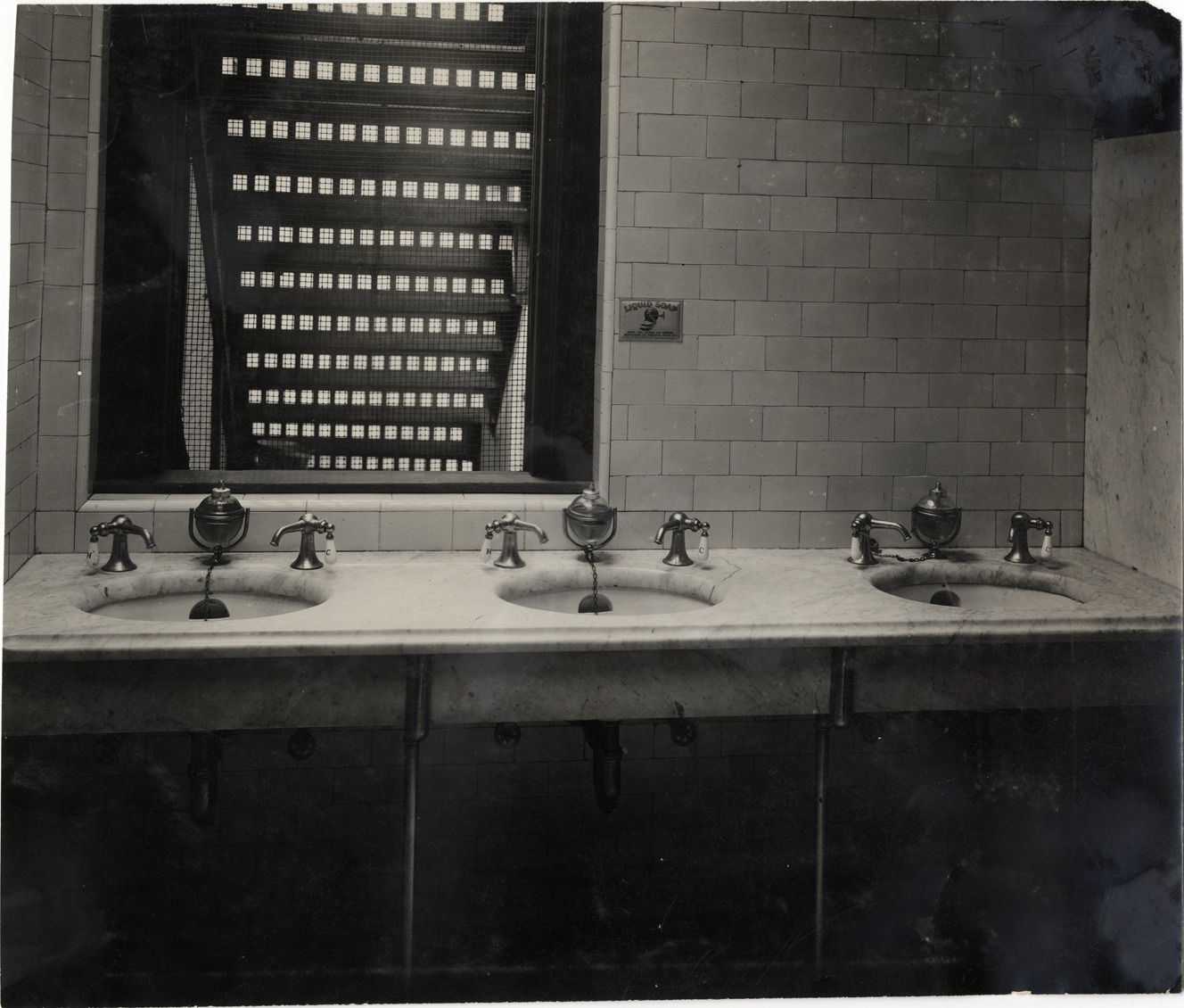 Favorite this☆ Restroom sinks with soap dispensers Description: View of bathroom sinks with liquid soap dispensers; "Liquid soap" sign and instructions for use displayed on tile wall. Handwritten on back: "Bathroom fixtures--Soap dispensers, 1908." Details Resource ID: na003769 Subject: Sinks (Plumbing fixtures) Restrooms Soap Photographic prints Date Issued: 1908 Format: 1 photographic print ; 7.5 x 9 in. Member of: National Automotive History Collection Lazarnick Collection Filing Location: Bathroom fixtures--Soap dispensers Rights: Physical rights are retained by DPL. Copyright is retained in accordance with U.S. copyright laws.