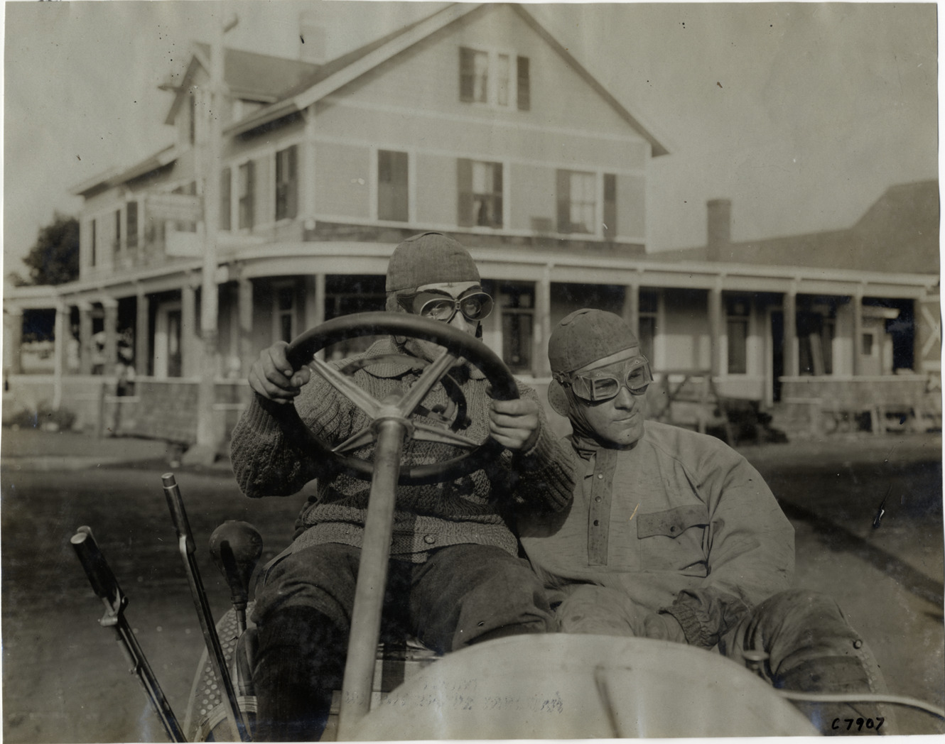 Favorite this☆ Henri Dolbeau and passenger in racecar Description: View of driver Henri Dolbeau and passenger in racecar; house in background. Handwritten on back: "Biography--Henri Dolbeau, 1906 Vanderbilt Cup driver." Details Resource ID: na003888 Subject: Automobile racing drivers Automobile occupants Photographic prints Date Issued: Unknown year Format: 1 photographic print ; 7 x 9 in. Member of: National Automotive History Collection Lazarnick Collection Filing Location: Biography--Dolbeau, Henri Negative Number: Negative #C7907 Rights: Physical rights are retained by DPL. Copyright is retained in accordance with U.S. copyright laws.