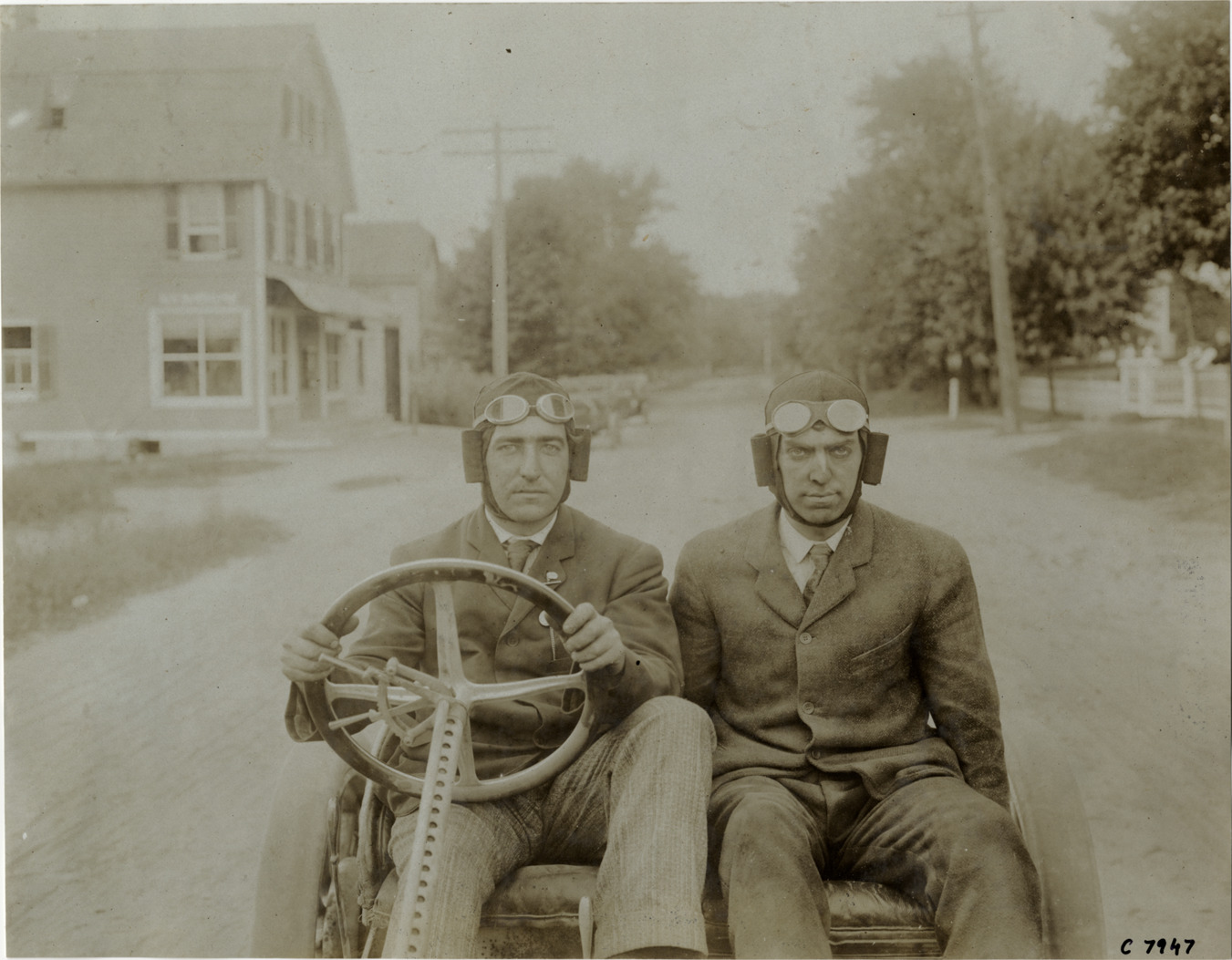 Favorite this☆ Ernest Keeler and passenger in racecar Description: View of driver Ernest Keeler and passenger in racecar. Handwritten on back: "Biography--Ernest Keeler. 1906 Vanderbilt Cup driver." Details Resource ID: na003972 Subject: Automobile racing drivers Automobile occupants Photographic prints Date Issued: Unknown year Format: 1 photographic print ; 7 x 9 in. Member of: National Automotive History Collection Lazarnick Collection Filing Location: Biography--Keeler, Ernest Negative Number: Negative #C7947 Rights: Physical rights are retained by DPL. Copyright is retained in accordance with U.S. copyright laws.