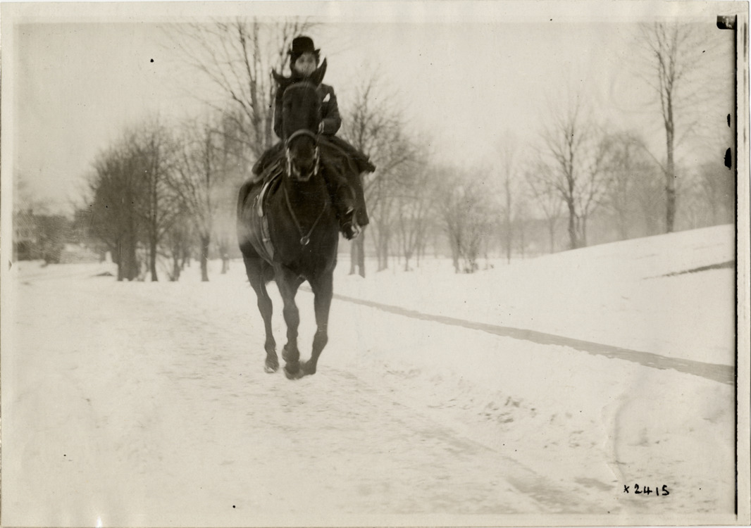 Favorite this☆ Vernia Kinsman riding horse Description: View of Vernia Kinsman riding horse on snow-covered road. Stamped on back: "Spooner & Wells, Inc., photographers, 1231 Woodward Ave., Detroit, Mich., telephone North 1745." Handwritten on back: "Biography--Kinsman, Vernia, 1910." Details Resource ID: na003991 Creator: Spooner & Wells Subject: Horsemen and horsewomen Horses Photographers--Michigan--Detroit Photographic prints Date Issued: 1910 Format: 1 photographic print ; 5 x 7.25 in. Member of: National Automotive History Collection Lazarnick Collection Filing Location: Biography--Kinsman, Vernia Rights: Physical rights are retained by DPL. Copyright is retained in accordance with U.S. copyright laws.