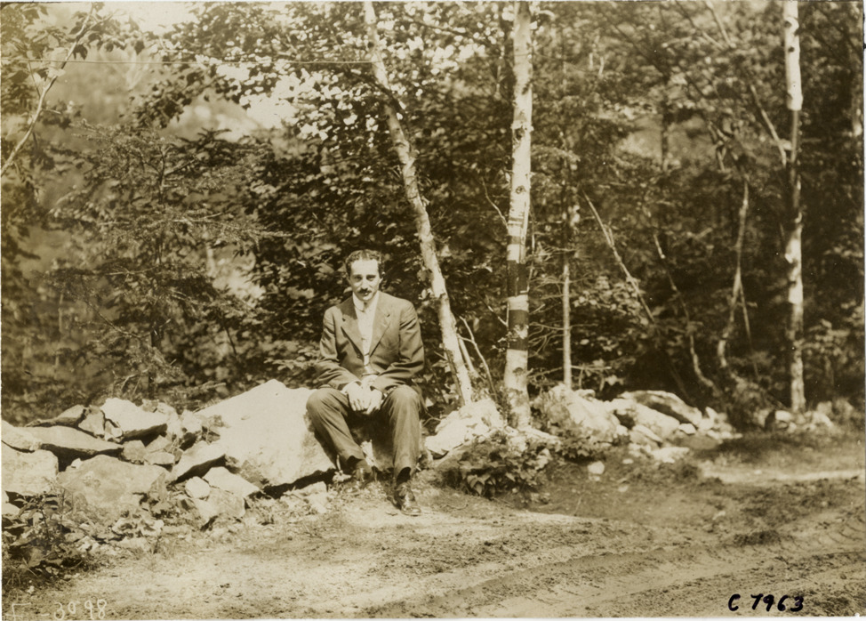 Portrait of Nathan Lazarnick, seated outdoors. Handwritten on back: "Biography--Nathan Lazarnick, 1906."