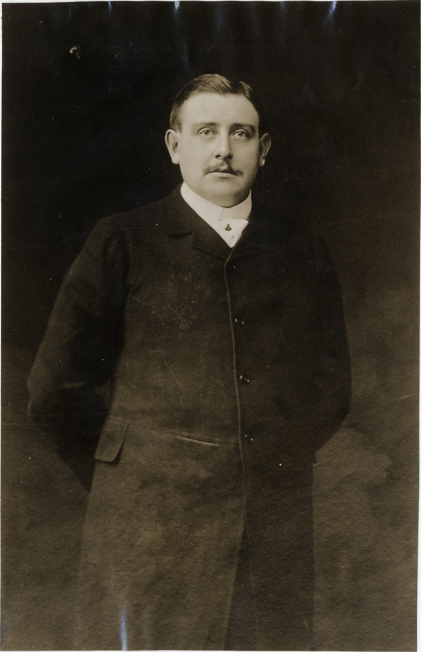 Portrait of Andre Massenat. Stamped on back: "Photo by N. Lazarnick, 29 West 42nd Street, N.Y., tel. 594 Bryant." Typed on back: "Sent by A.B. Tucker, 31 West 42d St., N.Y. City. Compliments of the Importers' Automobile Salon. Andre Massenat, Chairman, Show Committee, of the Importers' Automobile Salon, and head of the Panhard & Levassor agency." Handwritten on back: "Biography--Massenat, Andre, 1907."