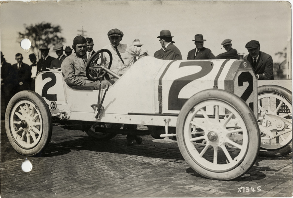 Charles Merz in Stutz racecar at 1913 Indianapolis race