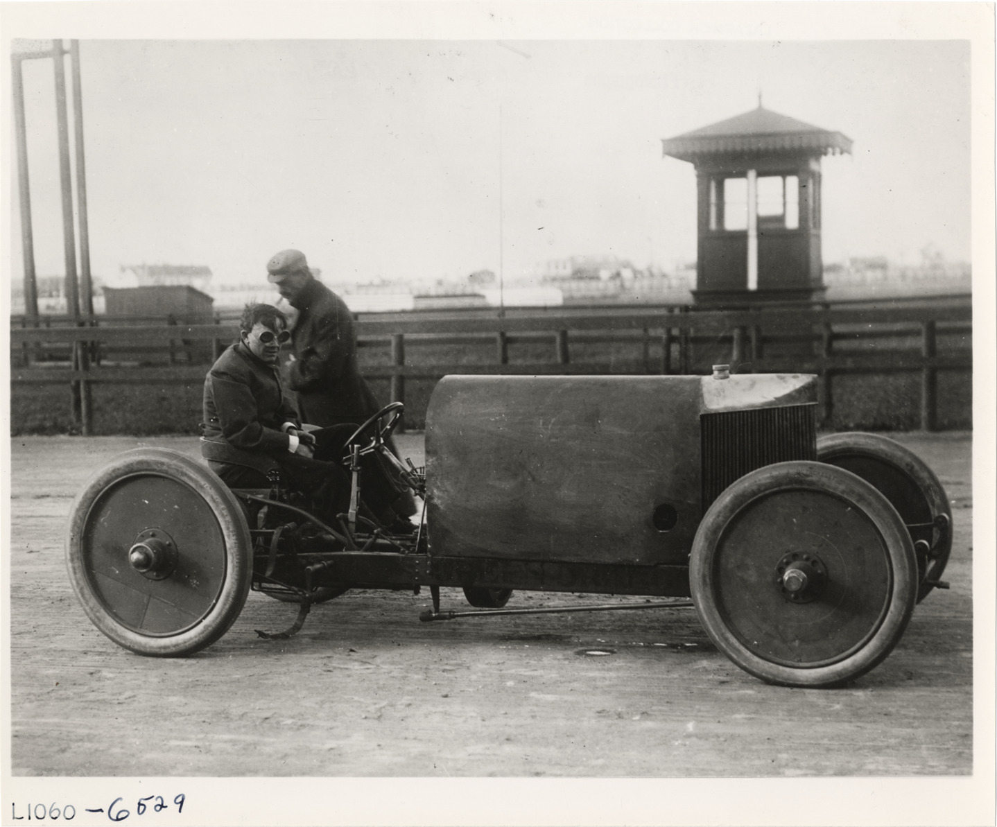Favorite this☆ Barney Oldfield in Peerless Green Dragon racecar Description: View of Barney Oldfield sitting in Peerless Green Dragon racecar; man stands behind car. Handwritten on back: "Biography--Oldfield, Barney. Peerless 'Green Dragon'." Details Resource ID: na004128 Subject: Oldfield, Barney, 1878-1946 Automobile racing drivers Automobiles, Racing Peerless automobile Photographic prints Date Issued: Unknown year Format: 1 photographic print ; 8 x 9.75 in. Member of: National Automotive History Collection Lazarnick Collection Filing Location: Biography--Oldfield, Barney Rights: Physical rights are retained by DPL. Copyright is retained in accordance with U.S. copyright laws.