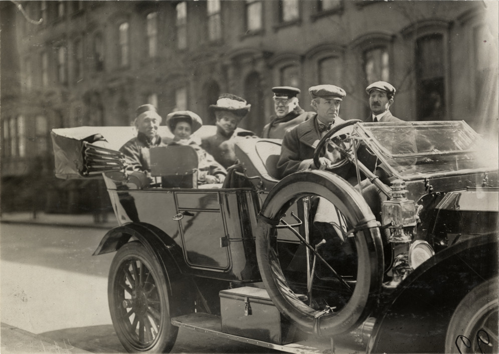 Favorite this☆ Passengers in automobile Description: View of car with driver and man in passenger seat; two women and Chinese man in back seat. Handwritten on back: "Biography--Unidentified, 1909." Details Resource ID: na004341 Subject: Automobile drivers Automobile occupants Chinese Automobiles Photographic prints Date Issued: 1909 Format: 1 photographic print ; 4.75 x 6.75 in. Member of: National Automotive History Collection Lazarnick Collection Filing Location: Biography--Unidentified #4 Rights: Physical rights are retained by DPL. Copyright is retained in accordance with U.S. copyright laws.