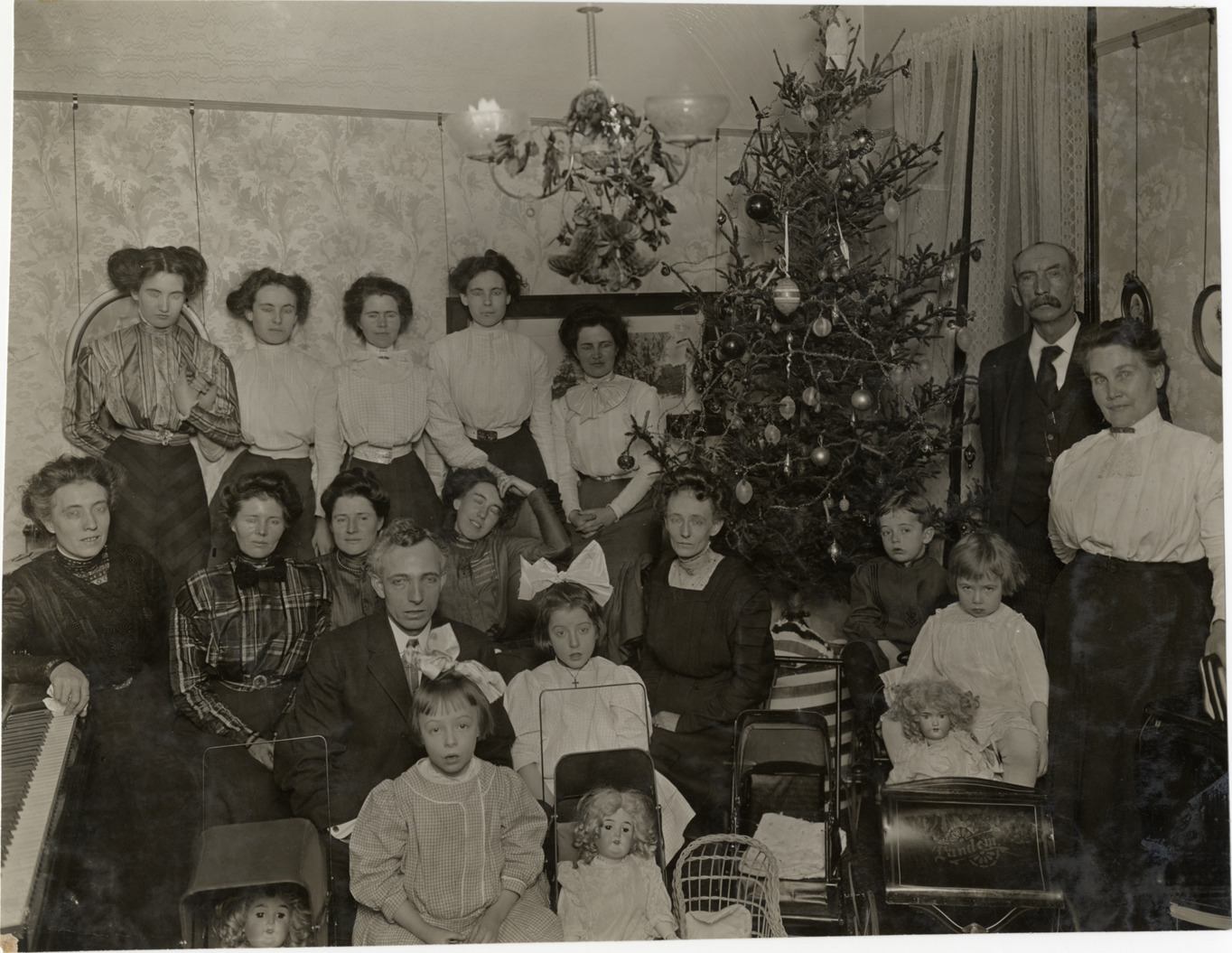 Favorite this☆ Group of men, women and children with Christmas tree Description: Group portrait of men, women and children posing in front of Christmas tree; young girls with dolls in front row. Handwritten on back: "Biography--Unidentified, 1910." Details Resource ID: na004431 Subject: Portraits, Group Christmas trees Dolls Photographic prints Date Issued: 1910 Format: 1 photographic print ; 7 x 9 in. Member of: National Automotive History Collection Lazarnick Collection Filing Location: Biography--Unidentified #8 Rights: Physical rights are retained by DPL. Copyright is retained in accordance with U.S. copyright laws.