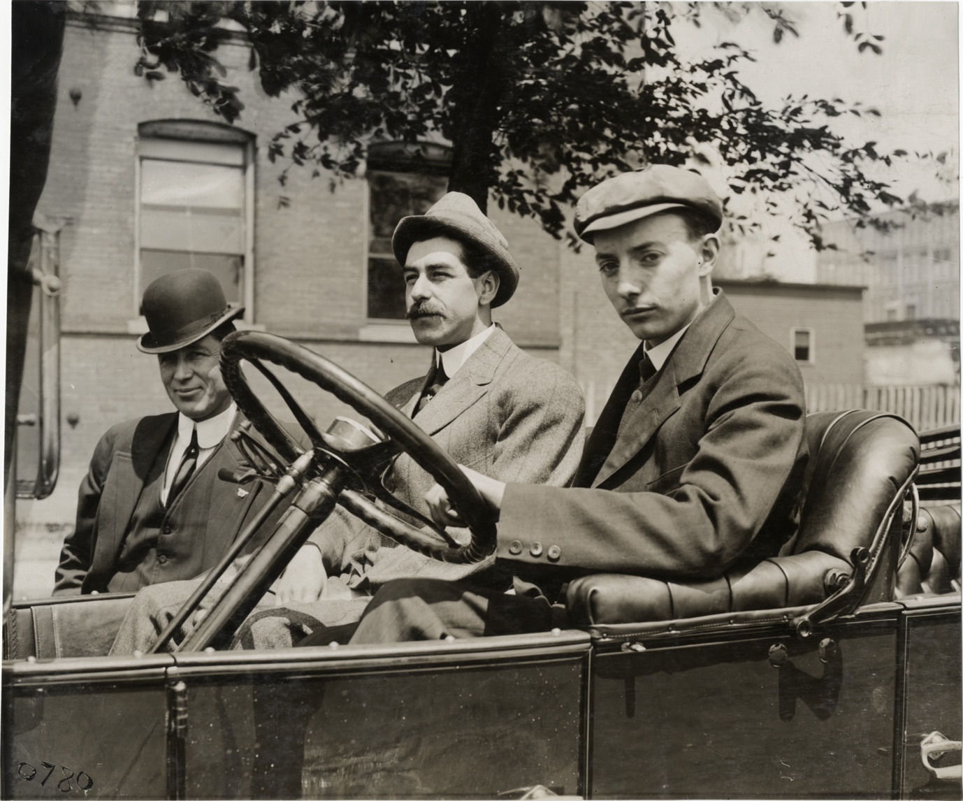 Favorite this☆ Two men in Owen automobile Description: View of two men sitting in Owen car; another man stands behind car. Handwritten on back: "Biography--Unidentified, 1910. Owen driver & salesman." Details Resource ID: na004452 Subject: Automobile drivers Sales personnel Owen Motor Car Company--Employees Photographic prints Date Issued: 1910 Format: 1 photographic print ; 7.75 x 9.25 in. Member of: National Automotive History Collection Lazarnick Collection Filing Location: Biography--Unidentified #8 Rights: Physical rights are retained by DPL. Copyright is retained in accordance with U.S. copyright laws.