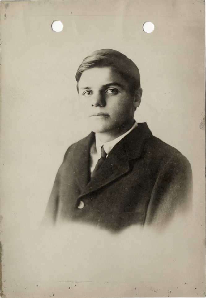 Portrait of a boy. Handwritten on back: "Biography--Unidentified. Copy of p. 724 to postcard size. For Earl Casey."