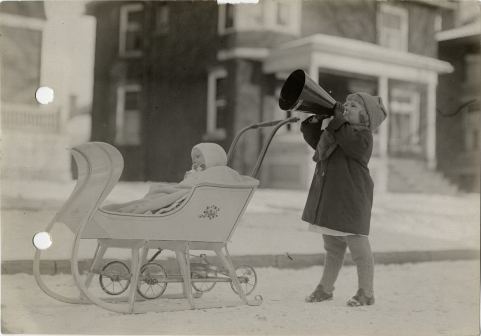 Favorite this☆ Charles A. Hughes' children Description: View of girl holding megaphone, standing next to baby in sleigh. Handwritten on back: "Biography--Unidentified. Chas. A. Hughes' children." Details Resource ID: na004494 Subject: Girls Megaphones Infants Sleighs Photographic prints Date Issued: Unknown year Format: 1 photographic print ; 4.5 x 6.5 in. Member of: National Automotive History Collection Lazarnick Collection Filing Location: Biography--Unidentified #9 Rights: Physical rights are retained by DPL. Copyright is retained in accordance with U.S. copyright laws.