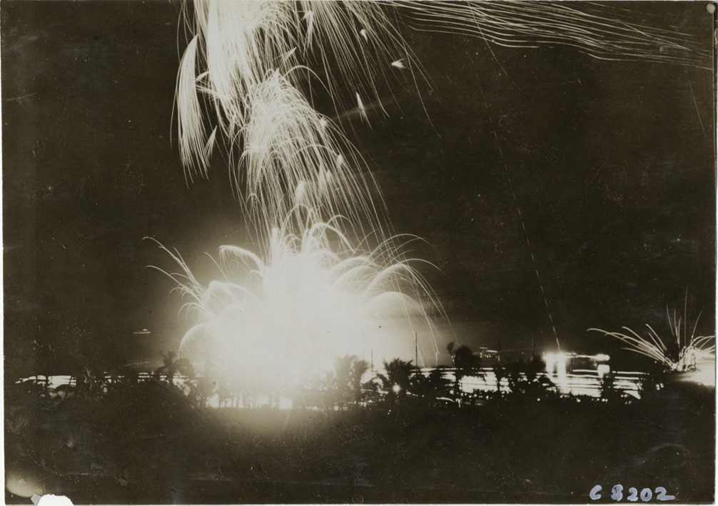 Favorite this☆ Fireworks at Palm Beach boat carnival Description: View of fireworks at Palm Beach boat carnival. Stamped on back: "Photo by N. Lazarnick, 29 West 42nd Street, New York." Handwritten on back: "Boats and boating--Palm Beach water boat carnival, 1905." Details Resource ID: na004760 Creator: Lazarnick, Nathan Subject: Fireworks--Florida--Palm Beach Photographers--New York (State)--New York Photographic prints Date Issued: 1905 Format: 1 photographic print ; 4.75 x 6.75 in. Member of: National Automotive History Collection Lazarnick Collection Filing Location: Boats and boating--Palm Beach water boat carnival, 1905 #1 Negative Number: Negative #C8202 Rights: Physical rights are retained by DPL. Copyright is retained in accordance with U.S. copyright laws.