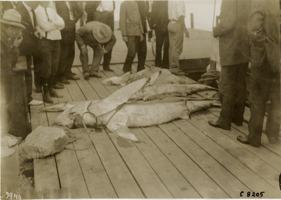 Favorite this☆ Sharks on dock, Palm Beach boat carnival Description: View of group of men looking at several dead sharks on dock at Palm Beach boat carnival. Handwritten on back: "Boats and boating--Palm Beach water boat carnival, 1905." Details Resource ID: na004763 Subject: Sharks--Florida--Palm Beach Men--Florida--Palm Beach Photographic prints Date Issued: 1905 Format: 1 photographic print ; 4.75 x 6.5 in. Member of: National Automotive History Collection Lazarnick Collection Filing Location: Boats and boating--Palm Beach water boat carnival, 1905 #2 Negative Number: Negative #C8205 Rights: Physical rights are retained by DPL. Copyright is retained in accordance with U.S. copyright laws.