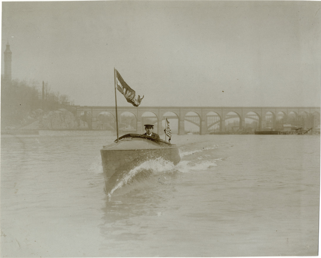 Favorite this☆ Man on motorboat Description: View of man on motorboat; boat is decorated with two flags. Bridge in background. Stamped on back: "Photo by F. Ed. Spooner, 1536 B'way, telephone 6536-38th St., New York, N.Y." Handwritten on back: "Boats and boating, 1906." Details Resource ID: na004876 Creator: Spooner, F. Ed. Subject: Motorboats Bridges Photographers--New York (State)--New York Photographic prints Date Issued: 1906 Format: 1 photographic print ; 6 x 7.25 in. Member of: National Automotive History Collection Lazarnick Collection Filing Location: Boats and boating, 1906 Rights: Physical rights are retained by DPL. Copyright is retained in accordance with U.S. copyright laws.