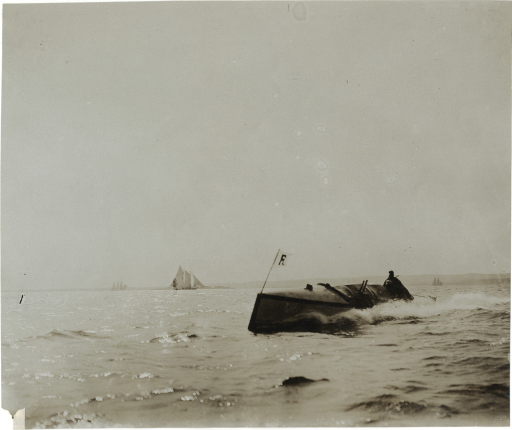 Favorite this☆ Motorboat Description: View of motorboat; sailing ship in background. Stamped on back: "Photo by F. Ed. Spooner, 1536 B'way, telephone 6536-38th St., New York, N.Y." Handwritten on back: "Boats and boating, 1906." Details Resource ID: na004881 Creator: Spooner, F. Ed. Subject: Motorboats Photographers--New York (State)--New York Photographic prints Date Issued: 1906 Format: 1 photographic print ; 6 x 7 in. Member of: National Automotive History Collection Lazarnick Collection Filing Location: Boats and boating, 1906 Rights: Physical rights are retained by DPL. Copyright is retained in accordance with U.S. copyright laws.