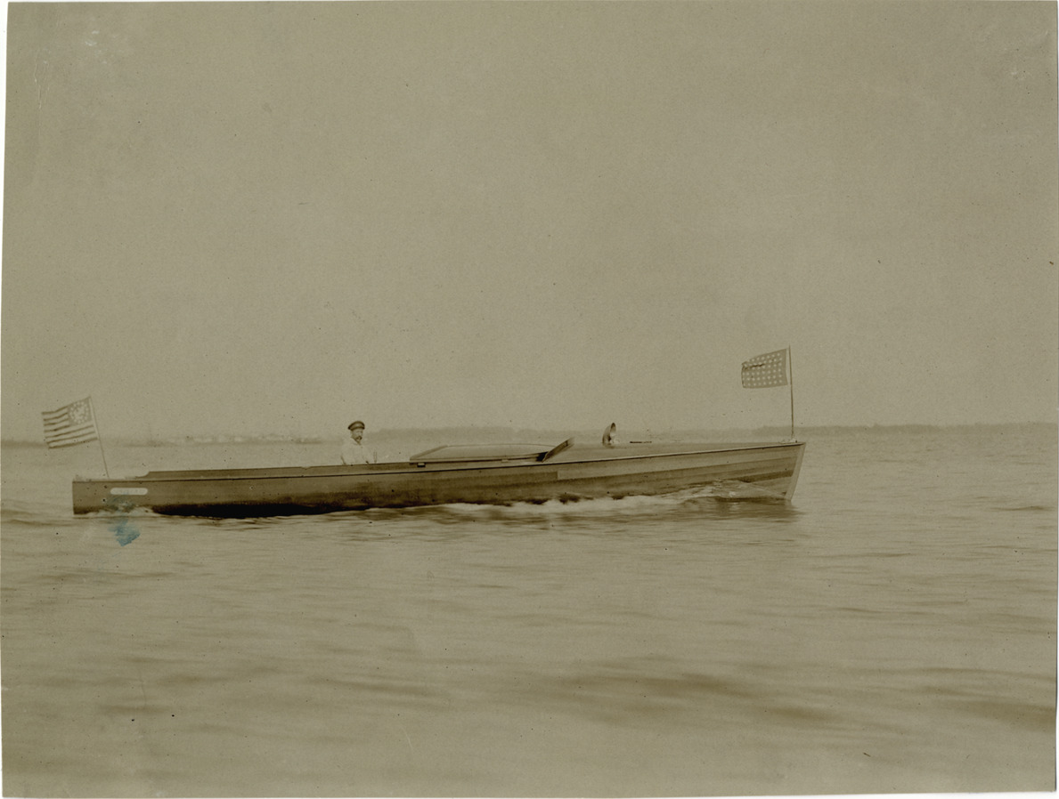 Favorite this☆ Man on motorboat "Simplex III" Description: View of man on the motorboat "Simplex III"; boat is decorated with two flags. Stamped on back: "Photo by F. Ed. Spooner, 1536 B'way, telephone 6536-38th St., New York, N.Y." Handwritten on back: "Boats and boating, 1906." Details Resource ID: na004890 Creator: Spooner, F. Ed. Subject: Motorboats Photographers--New York (State)--New York Photographic prints Date Issued: 1906 Format: 1 photographic print ; 6 x 8 in. Member of: National Automotive History Collection Lazarnick Collection Filing Location: Boats and boating, 1906 Rights: Physical rights are retained by DPL. Copyright is retained in accordance with U.S. copyright laws.
