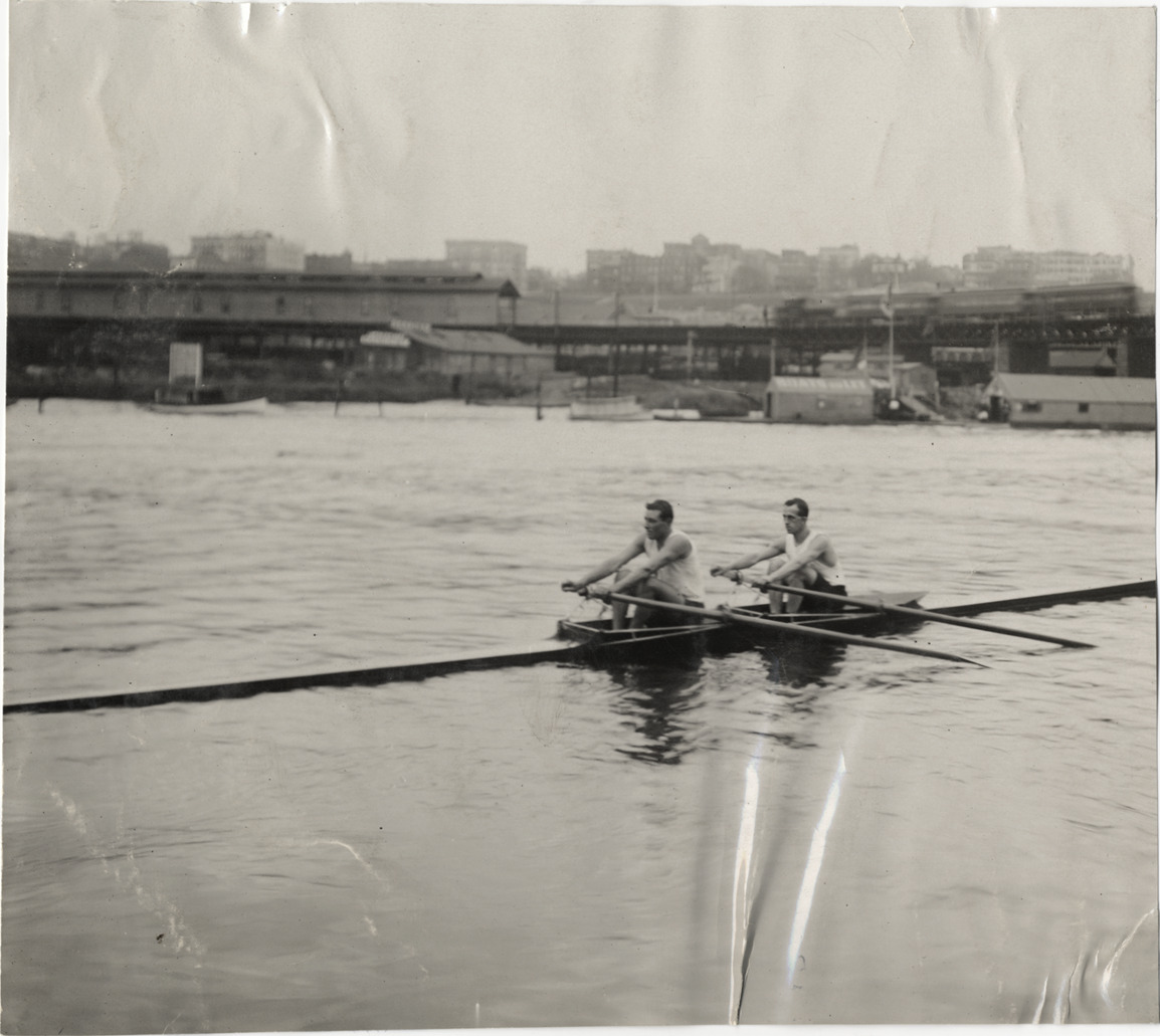 Favorite this☆ Two men rowing racing scull Description: View of two men rowing a racing scull; buildings on shore in background. Handwritten on back: "Boats and boating, 1908." Details Resource ID: na004896 Subject: Racing shells Rowing Rowers Photographic prints Date Issued: 1908 Format: 1 photographic print ; 7 x 7.75 in. Member of: National Automotive History Collection Lazarnick Collection Filing Location: Boats and boating, 1908 Rights: Physical rights are retained by DPL. Copyright is retained in accordance with U.S. copyright laws.