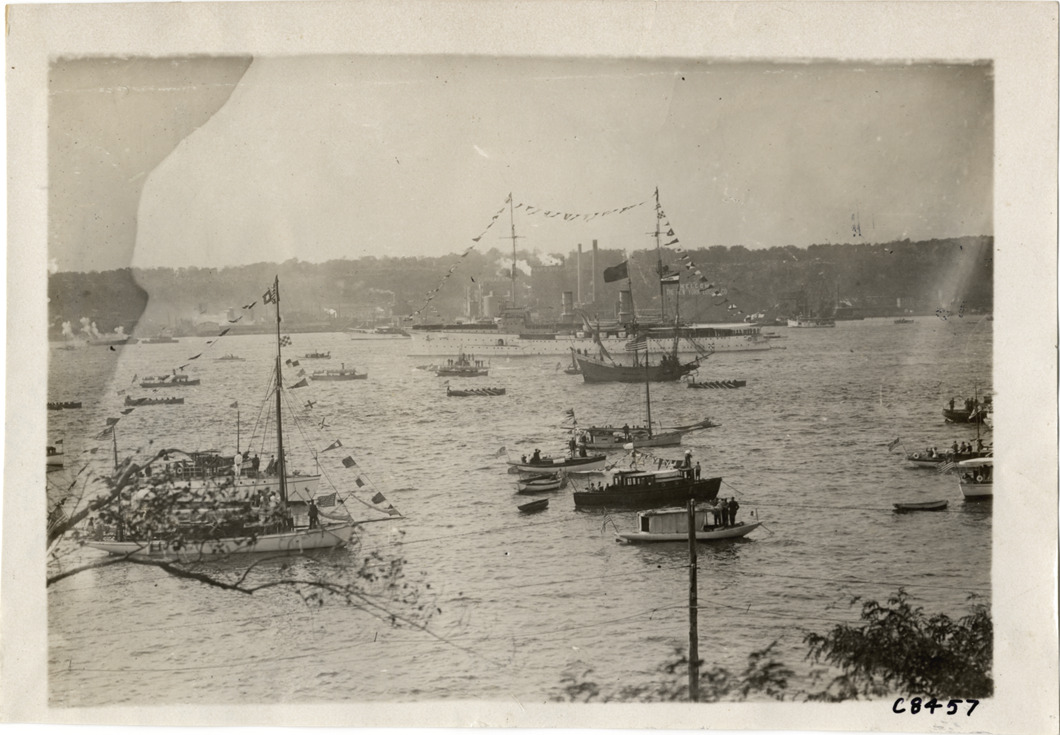 Favorite this☆ Boats on river, Hudson-Fulton Celebration Description: View of steamships, sailboats, sailing ship, motorboats and other boats on river during naval parade at Hudson-Fulton Celebration. Handwritten on back: "Boats and boating--Hudson-Fulton Celebration, naval parade, 1909." Details Resource ID: na004968 Subject: Boats and boating--New York (State)--New York Hudson-Fulton Celebration, 1909 Photographic prints Date Issued: 1909 Format: 1 photographic print ; 5 x 7 in. Member of: National Automotive History Collection Lazarnick Collection Filing Location: Boats and boating--Hudson-Fulton Celebration, naval parade, 1909 #3 Negative Number: Negative #C8457 Rights: Physical rights are retained by DPL. Copyright is retained in accordance with U.S. copyright laws.