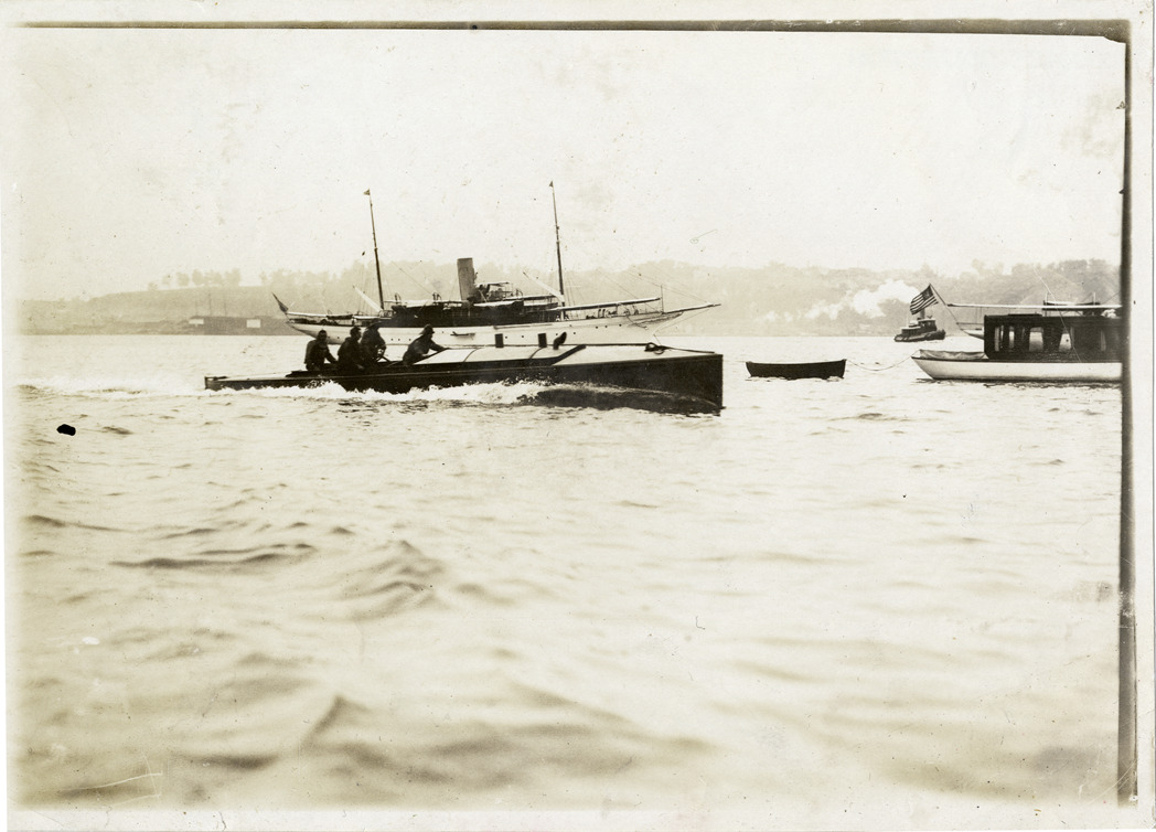 Favorite this☆ Men on motorboat Description: View of four men on motorboat; steamship in background. Handwritten on back: "Boats and boating, misc." Details Resource ID: na005029 Subject: Motorboats Steamboats Photographic prints Date Issued: Unknown year Format: 1 photographic print ; 5 x 7 in. Member of: National Automotive History Collection Lazarnick Collection Filing Location: Boats and boating, Misc. Rights: Physical rights are retained by DPL. Copyright is retained in accordance with U.S. copyright laws.