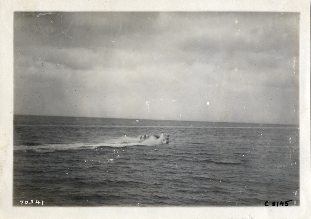 Distant view of motorboat at Huntington boat races, Huntington Bay, Long Island, New York. Stamped on back: "Spooner & Wells, Inc., photographers, telephones 3472-3473 Columbus, 1931 Broadway, New York." Handwritten on back: "Boat races--Huntington boat races, 1911."
