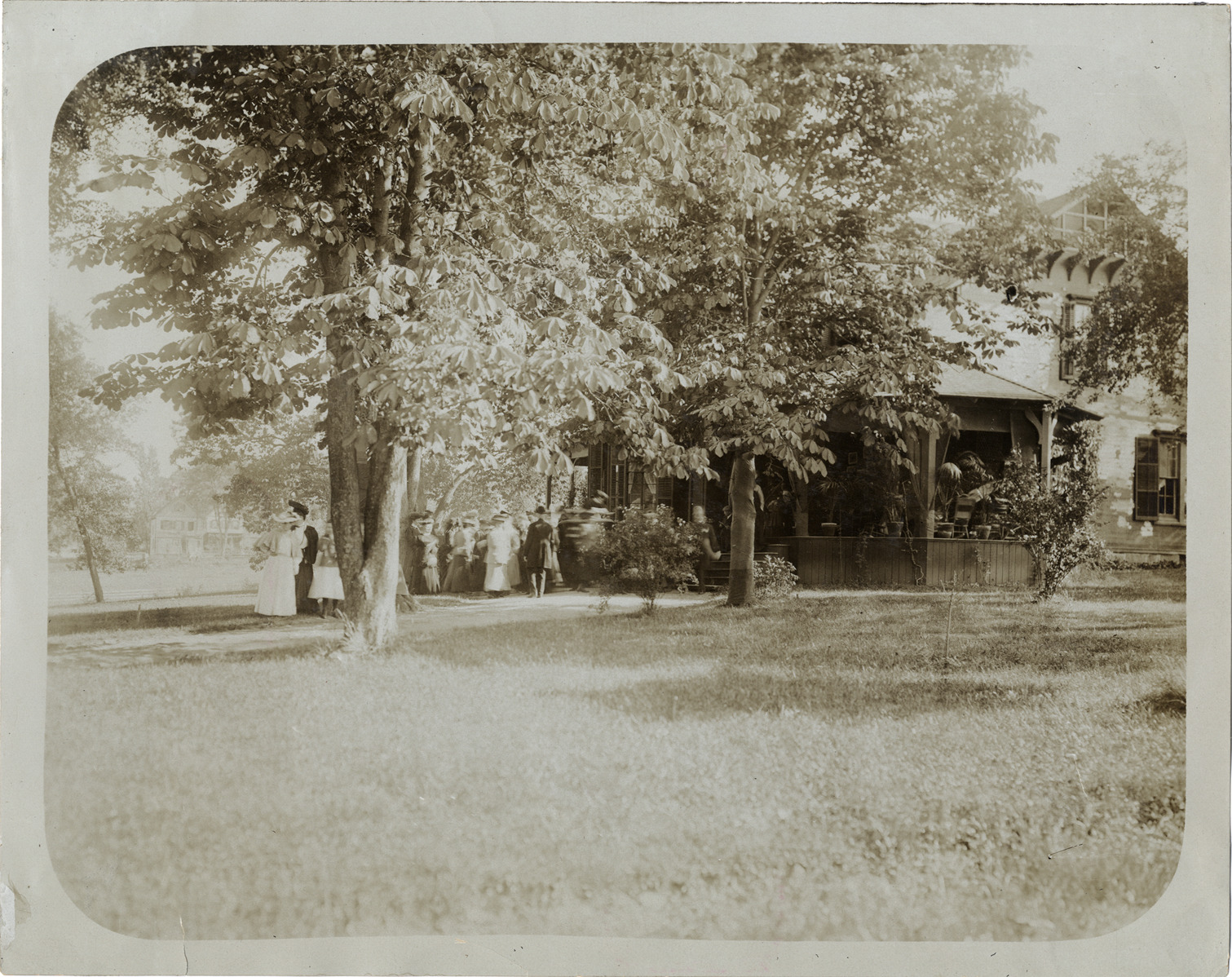 Favorite this☆ Group of men and women in front of porch Description: View of group of men and women in front of porch; house is partially obscured by trees. Handwritten on back: "Bourgeoisie." Details Resource ID: na005214 Subject: Dwellings Photographic prints Date Issued: Unknown year Format: 1 photographic print ; 8 x 10 in. Member of: National Automotive History Collection Lazarnick Collection Filing Location: Bourgeoisie #2 Rights: Physical rights are retained by DPL. Copyright is retained in accordance with U.S. copyright laws.