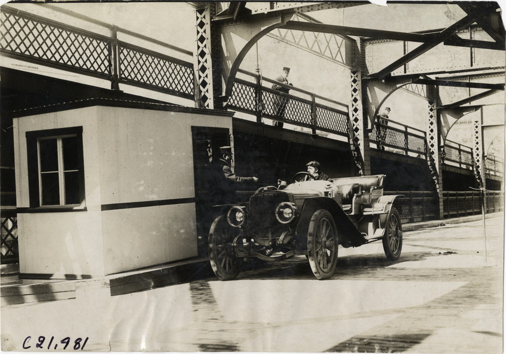 Favorite this☆ Motorist at tollbooth on Queensboro Bridge Description: View of man in car stopping at tollbooth on Queensboro Bridge. Stamped on back: "Spooner & Wells, Inc., photographers, telephones 3472-3473 Columbus, 1931 Broadway, New York." Handwritten on back: "Bridges--Queensboro Bridge, 1909, folder #1." Details Resource ID: na005304 Creator: Spooner & Wells Subject: Queensboro Bridge (New York, N.Y.) Cantilever bridges--New York (State)--New York Automobiles--New York (State)--New York Automobile drivers--New York (State)--New York Photographers--New York (State)--New York Photographic prints Date Issued: 1909 Format: 1 photographic print ; 4.75 x 6.75 in. Member of: National Automotive History Collection Lazarnick Collection Filing Location: Bridges--Queensboro Bridge, 1909 #1 Negative Number: Negative #C21,981 Rights: Physical rights are retained by DPL. Copyright is retained in accordance with U.S. copyright laws.