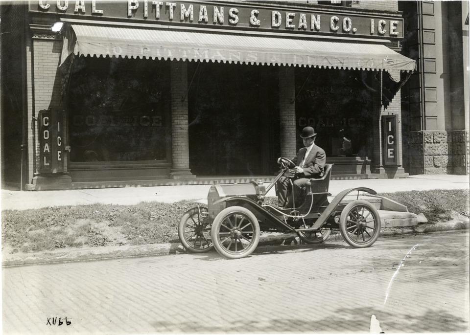 Favorite this☆ Man driving 1910 Brush automobile Description: View of man driving 1910 Brush car in front of Pittmans & Dean Co. building. Electric sign reads: "Pittmans & Dean Co., coal, ice." Handwritten on back: "Brush, 1910." Details Resource ID: na005309 Subject: Automobiles--Michigan--Detroit Automobile drivers--Michigan--Detroit Brush Runabout Company Commercial buildings--Michigan--Detroit Photographic prints Date Issued: Unknown year Format: 1 photographic print ; 4.5 x 6.5 in. Member of: National Automotive History Collection Lazarnick Collection Filing Location: Brush Rights: Physical rights are retained by DPL. Copyright is retained in accordance with U.S. copyright laws.