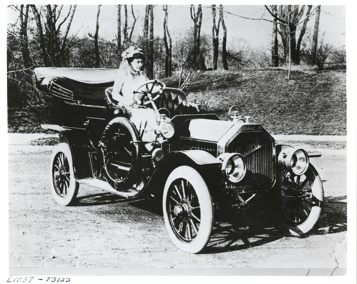 View of Annette Kellerman in Buick touring car in Central Park. Handwritten on back: "Buick. Annette Kellerman in Buick touring car in Central Park."
