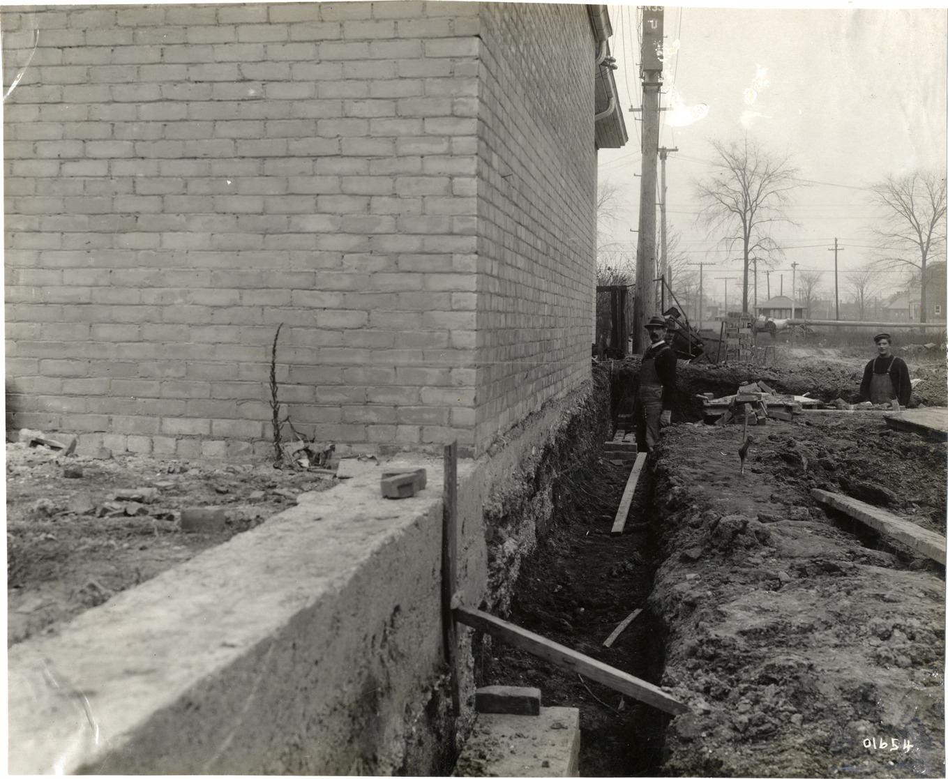 Favorite this☆ Building construction on Palmer Avenue, Detroit Description: View of brick building under construction and construction workers on Palmer Ave. in Detroit, Michigan. Handwritten on back: "Building construction, 1911. Palmer Ave., 1910." Details Resource ID: na005342 Subject: Construction workers--Michigan--Detroit Buildings--Michigan--Detroit--Design and construction Photographic prints Date Issued: 1910 to 1911 Format: 1 photographic print ; 7.5 x 9 in. Member of: National Automotive History Collection Lazarnick Collection Filing Location: Building construction Rights: Physical rights are retained by DPL. Copyright is retained in accordance with U.S. copyright laws.