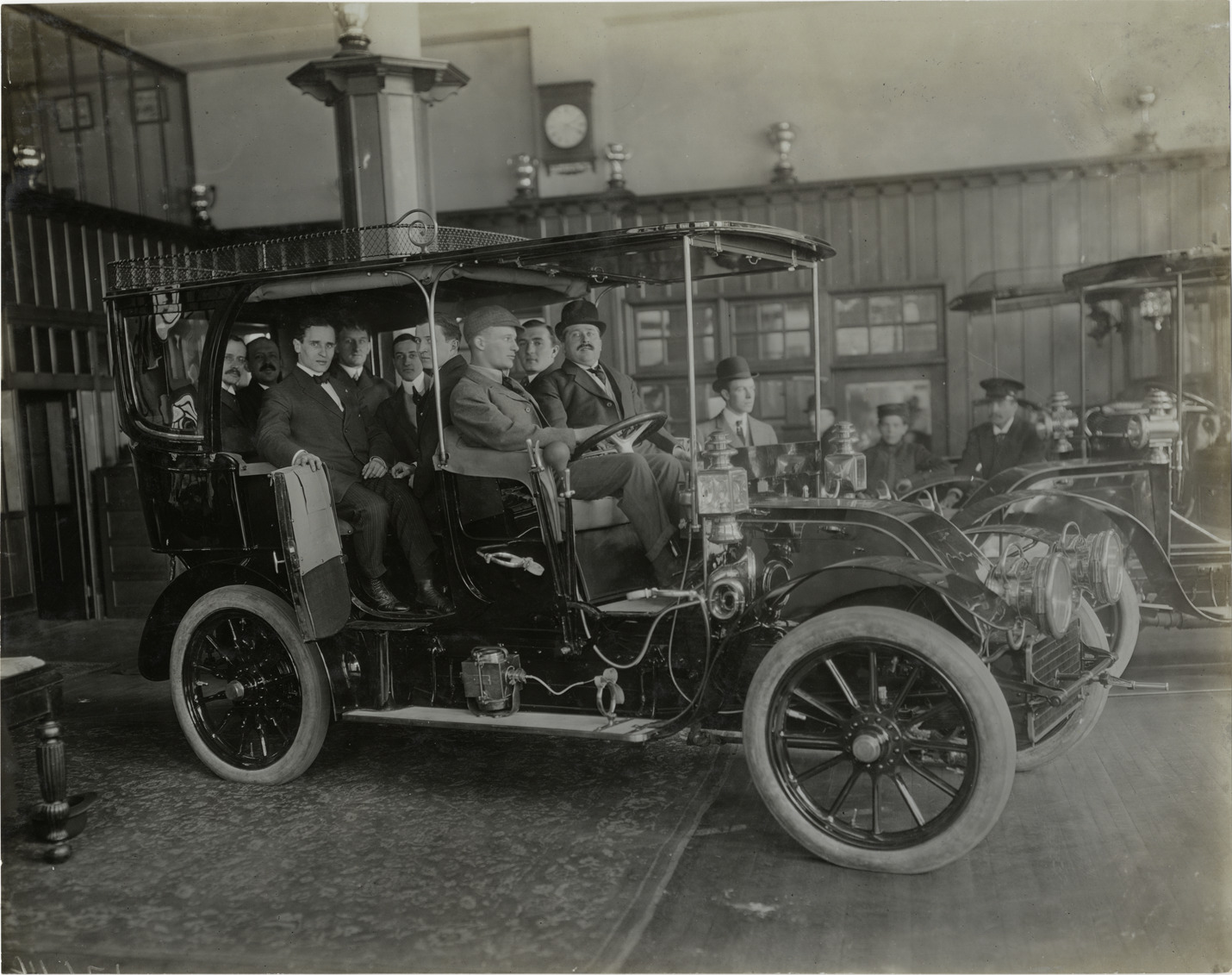 Favorite this☆ Men in 1907 C.G.V. automobile in showroom Description: View of group of men sitting in 1907 C.G.V. car in showroom. Stamped on back: "Spooner and Wells, 1931 Broadway, New York, duplicates any time, enlargements all sizes, tel. 3472-3473 Col., credit appreciated." Handwritten on back: "C.G.V., 1907." Details Resource ID: na005367 Creator: Spooner & Wells Subject: Automobiles Charron, Girardot and Voigt Photographers--New York (State)--New York Photographic prints Date Issued: Unknown year Format: 1 photographic print ; 7.5 x 9.5 in. Member of: National Automotive History Collection Lazarnick Collection Filing Location: C.G.V. Rights: Physical rights are retained by DPL. Copyright is retained in accordance with U.S. copyright laws.