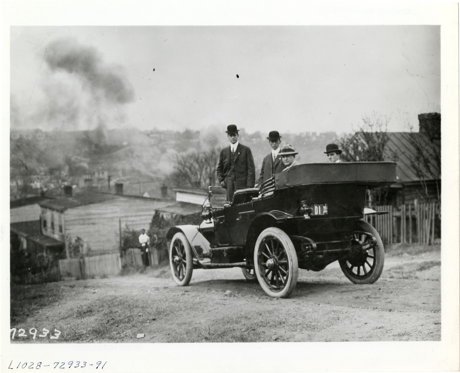 Favorite this☆ Motorists in 1912 Chalmers automobile Description: View of motorists in 1912 Chalmers car at top of hill on dirt road. Handwritten on back: "Chalmers, 1912." Details Resource ID: na005483 Subject: Automobiles Chalmers Motor Company Chalmers-Detroit Motor Company Photographic prints Date Issued: Unknown year Format: 1 photographic print ; 8 x 10 in. Member of: National Automotive History Collection Lazarnick Collection Filing Location: Chalmers Rights: Physical rights are retained by DPL. Copyright is retained in accordance with U.S. copyright laws.