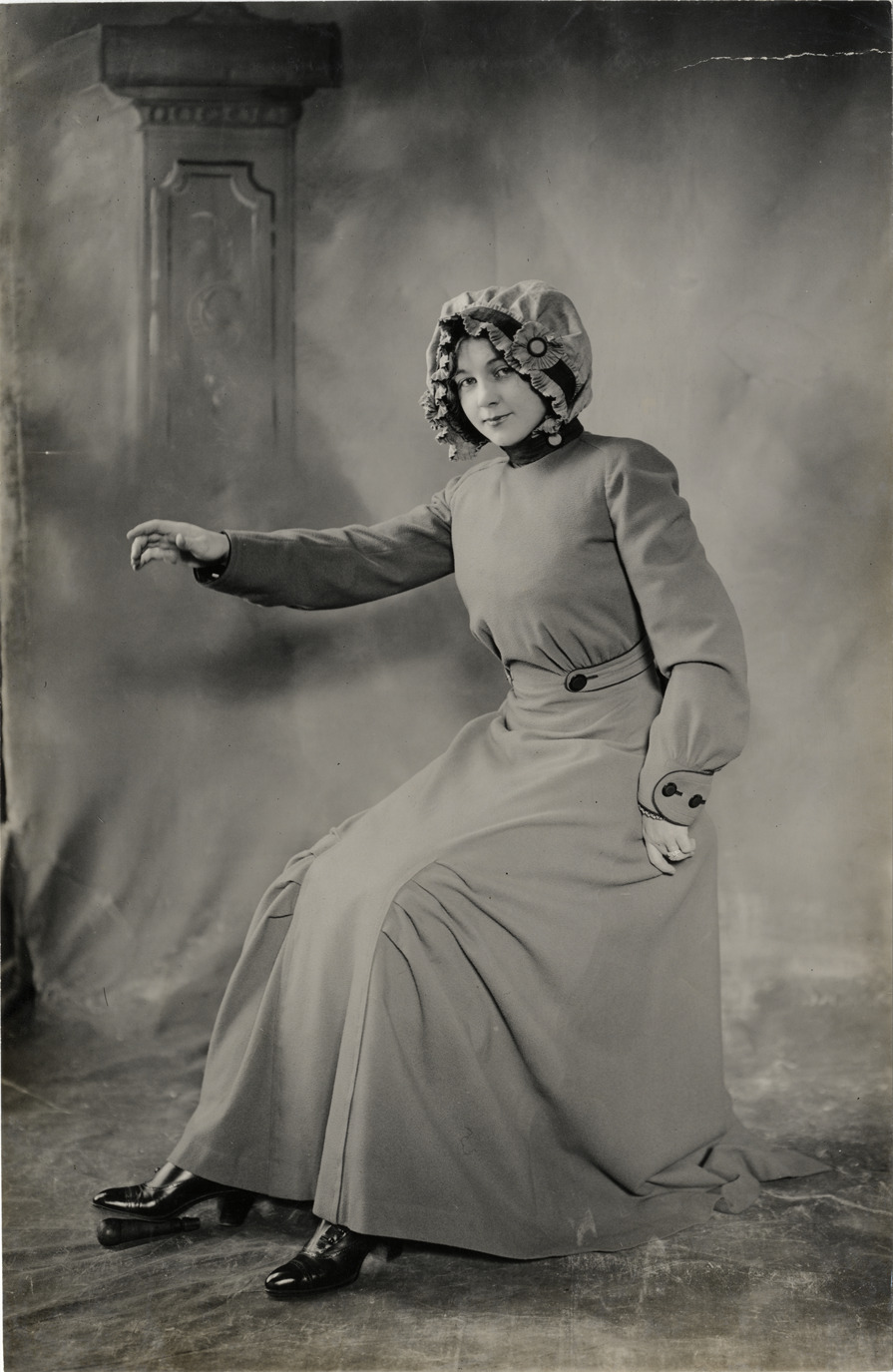 Favorite this☆ Portrait of a woman Description: Studio portrait of woman wearing long dress and bonnet, sitting in front of painted backdrop. Stamped on back: "Spooner & Wells, Inc., photographers, telephones 3472-3473 Columbus, 1931 Broadway, New York." Handwritten on back: "Clothing, 1911." Details Resource ID: na005521 Creator: Spooner & Wells Subject: Women--Portraits Photographers--New York (State)--New York Photographic prints Date Issued: 1911 Format: 1 photographic print ; 9.25 x 6 in. Member of: National Automotive History Collection Lazarnick Collection Filing Location: Clothing Rights: Physical rights are retained by DPL. Copyright is retained in accordance with U.S. copyright laws.