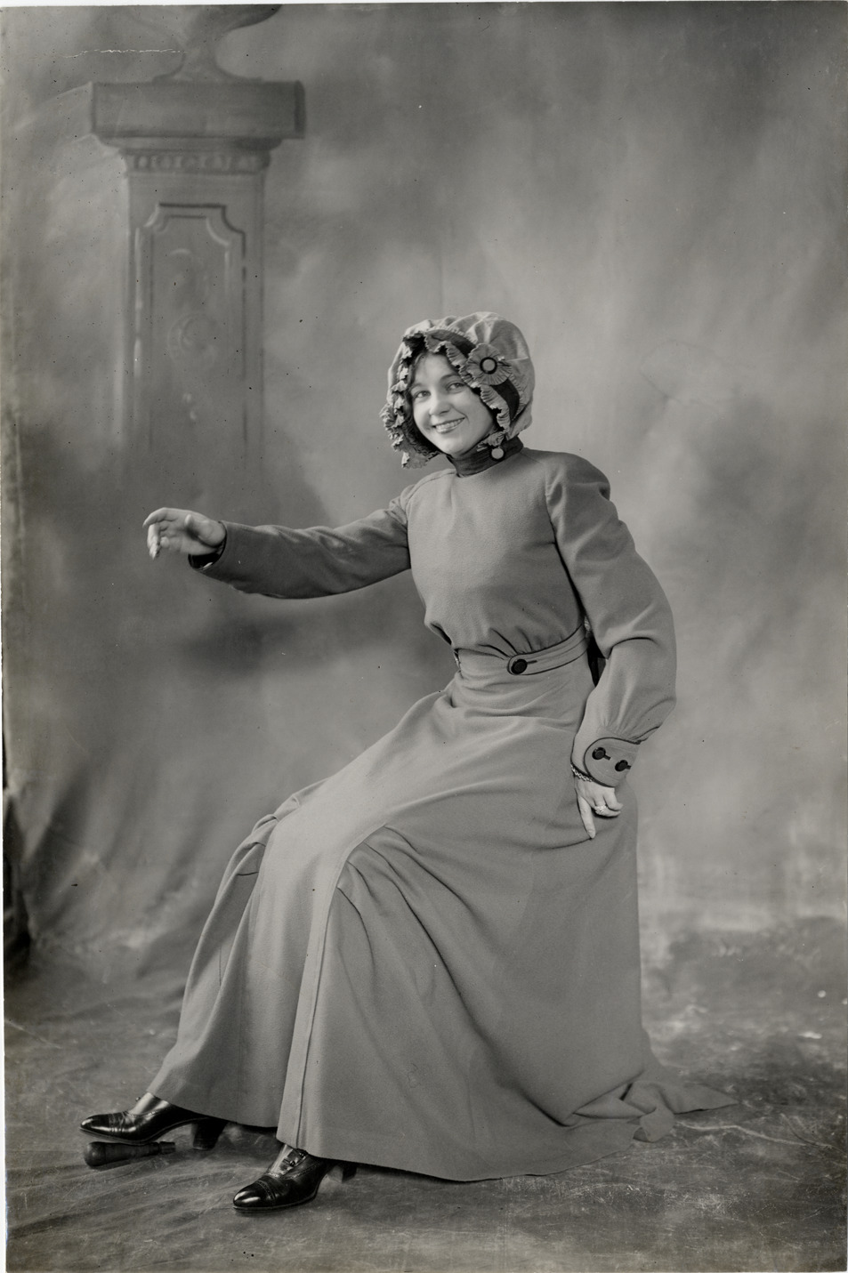 Favorite this☆ Portrait of a woman Description: Studio portrait of woman wearing long dress and bonnet, sitting in front of painted backdrop. Stamped on back: "Spooner & Wells, Inc., photographers, telephones 3472-3473 Columbus, 1931 Broadway, New York." Handwritten on back: "Clothing, 1911." Details Resource ID: na005522 Creator: Spooner & Wells Subject: Women--Portraits Photographers--New York (State)--New York Photographic prints Date Issued: 1911 Format: 1 photographic print ; 9.5 x 6.5 in. Member of: National Automotive History Collection Lazarnick Collection Filing Location: Clothing Rights: Physical rights are retained by DPL. Copyright is retained in accordance with U.S. copyright laws.