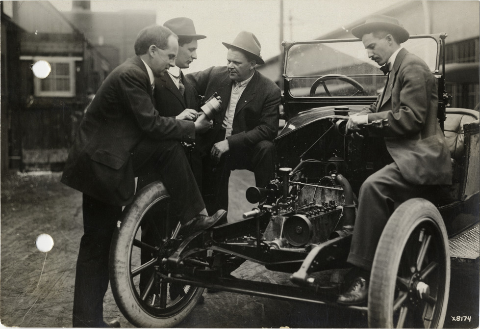 Favorite this☆ Men examining Hupp automobile Description: View of four men examining Hupp car at Hupp Motor Car Company. Stamped on back: "Spooner & Wells, Inc., photographers, 1231 Woodward Ave., Detroit, Mich." Handwritten on back: "Companies--Hupp Motor Car Company. Taken at Hupp Motor Car Co." Details Resource ID: na005625 Creator: Spooner & Wells Subject: Hupp Motor Car Company Hupp automobile Photographers--Michigan--Detroit Photographic prints Date Issued: Unknown year Format: 1 photographic print ; 4.5 x 6.5 in. Member of: National Automotive History Collection Lazarnick Collection Filing Location: Companies--Hupp Motor Car Company Rights: Physical rights are retained by DPL. Copyright is retained in accordance with U.S. copyright laws.