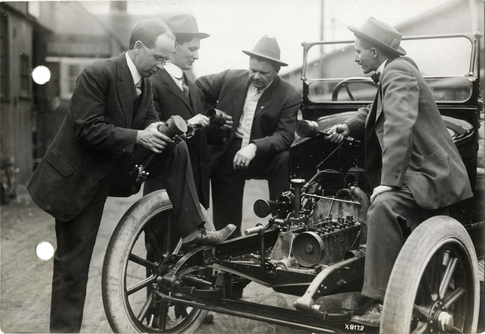 Favorite this☆ Men examining Hupp automobile Description: View of four men examining Hupp car at Hupp Motor Car Company. Stamped on back: "Spooner & Wells, Inc., photographers, 1231 Woodward Ave., Detroit, Mich." Handwritten on back: "Companies--Hupp Motor Car Company. Taken at Hupp Motor Car Co." Details Resource ID: na005626 Creator: Spooner & Wells Subject: Hupp Motor Car Company Hupp automobile Photographers--Michigan--Detroit Photographic prints Date Issued: Unknown year Format: 1 photographic print ; 4.5 x 6.5 in. Member of: National Automotive History Collection Lazarnick Collection Filing Location: Companies--Hupp Motor Car Company Rights: Physical rights are retained by DPL. Copyright is retained in accordance with U.S. copyright laws.