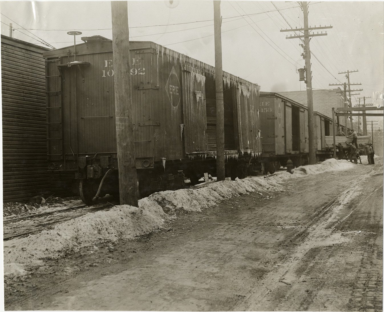 Favorite this☆ Workers loading crate into railroad car, Michigan Steel Boat Company Description: View of several workmen loading wooden crate into railroad car at Michigan Steel Boat Company. Handwritten on back: "Companies--Michigan Steel Boat Co., 1910." Details Resource ID: na005718 Subject: Railroad cars--Michigan--Detroit Boating industry--Michigan--Detroit Crates--Michigan--Detroit Photographic prints Date Issued: 1910 Format: 1 photographic print ; 7.25 x 9 in. Member of: National Automotive History Collection Lazarnick Collection Filing Location: Companies--Michigan Steel Boat Co. Rights: Physical rights are retained by DPL. Copyright is retained in accordance with U.S. copyright laws.
