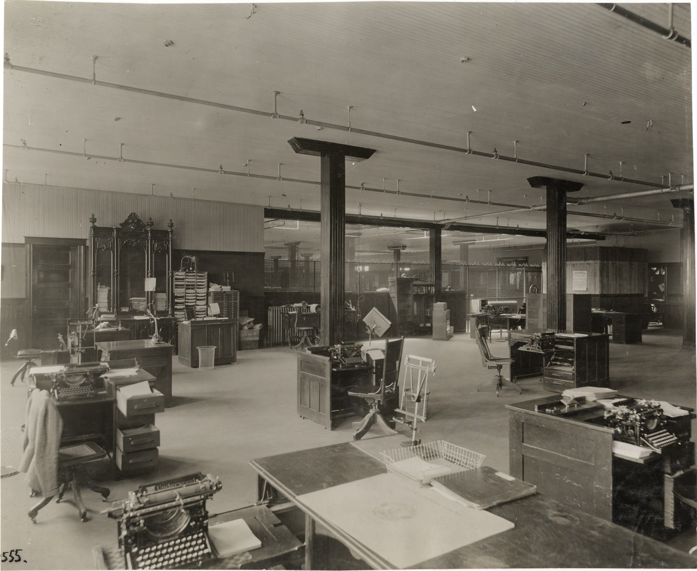 Favorite this☆ Office, Rapid Motor Vehicle Company Description: View of empty office at Rapid Motor Vehicle Company factory. Room is furnished with typewriters and desks. Handwritten on back: "Companies--Rapid Motor Vehicle Co., 1910. Rapid factory." Details Resource ID: na005773 Subject: Rapid Motor Vehicle Company Offices Typewriters Photographic prints Date Issued: 1910 Format: 1 photographic print ; 7.75 x 9.5 in. Member of: National Automotive History Collection Lazarnick Collection Filing Location: Companies--Rapid Motor Vehicle Co. Rights: Physical rights are retained by DPL. Copyright is retained in accordance with U.S. copyright laws.
