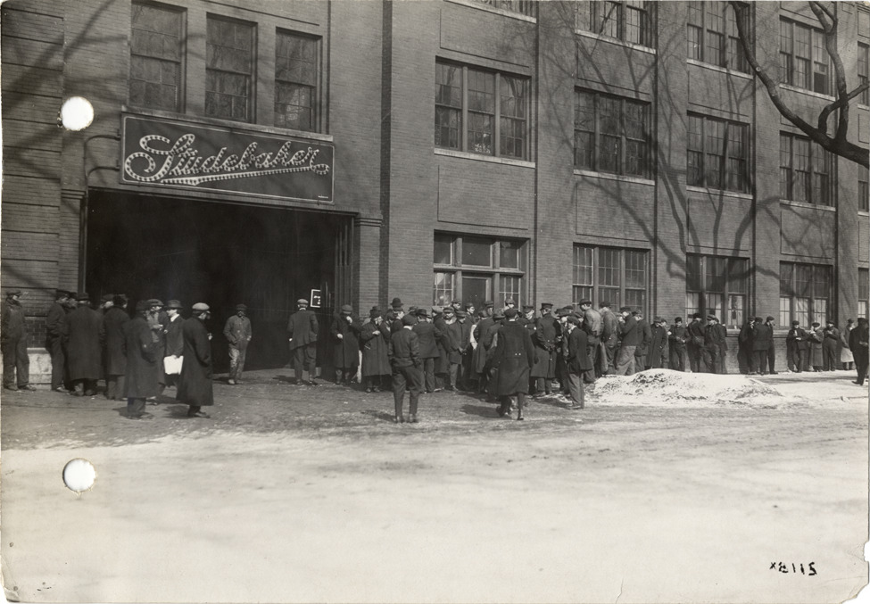 Favorite this☆ Workers leaving Studebaker factory Description: View of workers leaving Studebaker factory; "Studebaker" electric sign over entrance. Stamped on back: "Spooner & Wells, Inc., photographers, 1231 Woodward Ave., Detroit, Mich." Handwritten on back: "Companies--Studebaker. Workmen leaving Studebaker plant." Details Resource ID: na005782 Creator: Spooner & Wells Subject: Studebaker Corporation Automobile factories Automobile industry workers Photographers--Michigan--Detroit Photographic prints Date Issued: Unknown year Format: 1 photographic print ; 4.5 x 6.5 in. Member of: National Automotive History Collection Lazarnick Collection Filing Location: Companies--Studebaker Rights: Physical rights are retained by DPL. Copyright is retained in accordance with U.S. copyright laws.