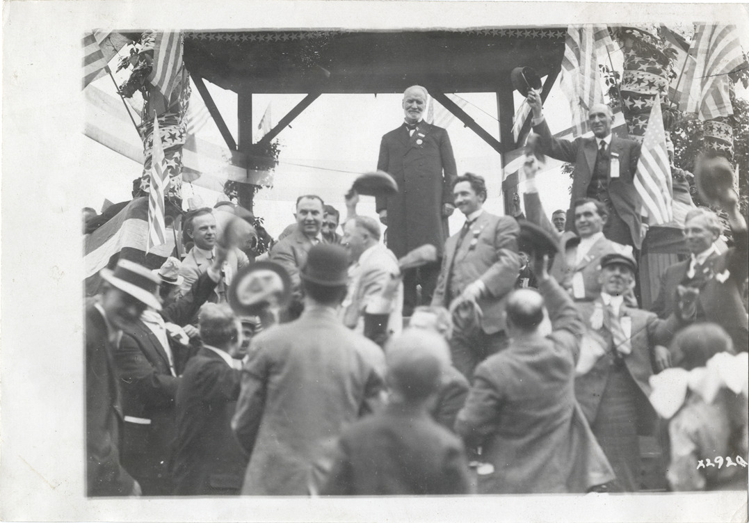 Secretary of Agriculture James Wilson standing on bandstand, Detroit Board of Commerce, Eighth Annual Cruise
