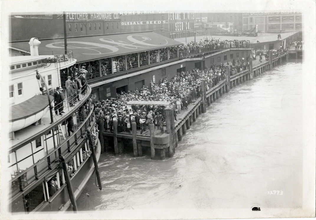 Crowd at D & C Lake Lines dock, Detroit Board of Commerce, Eighth Annual Cruise