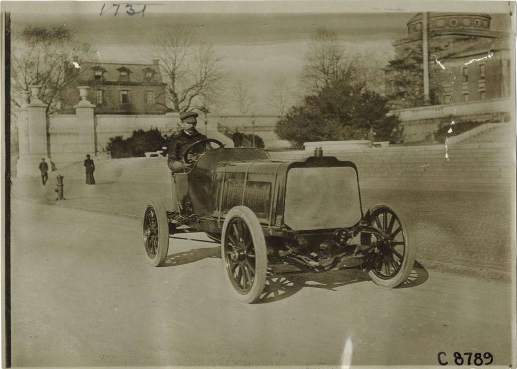 Man driving 1904 Darracq racecar