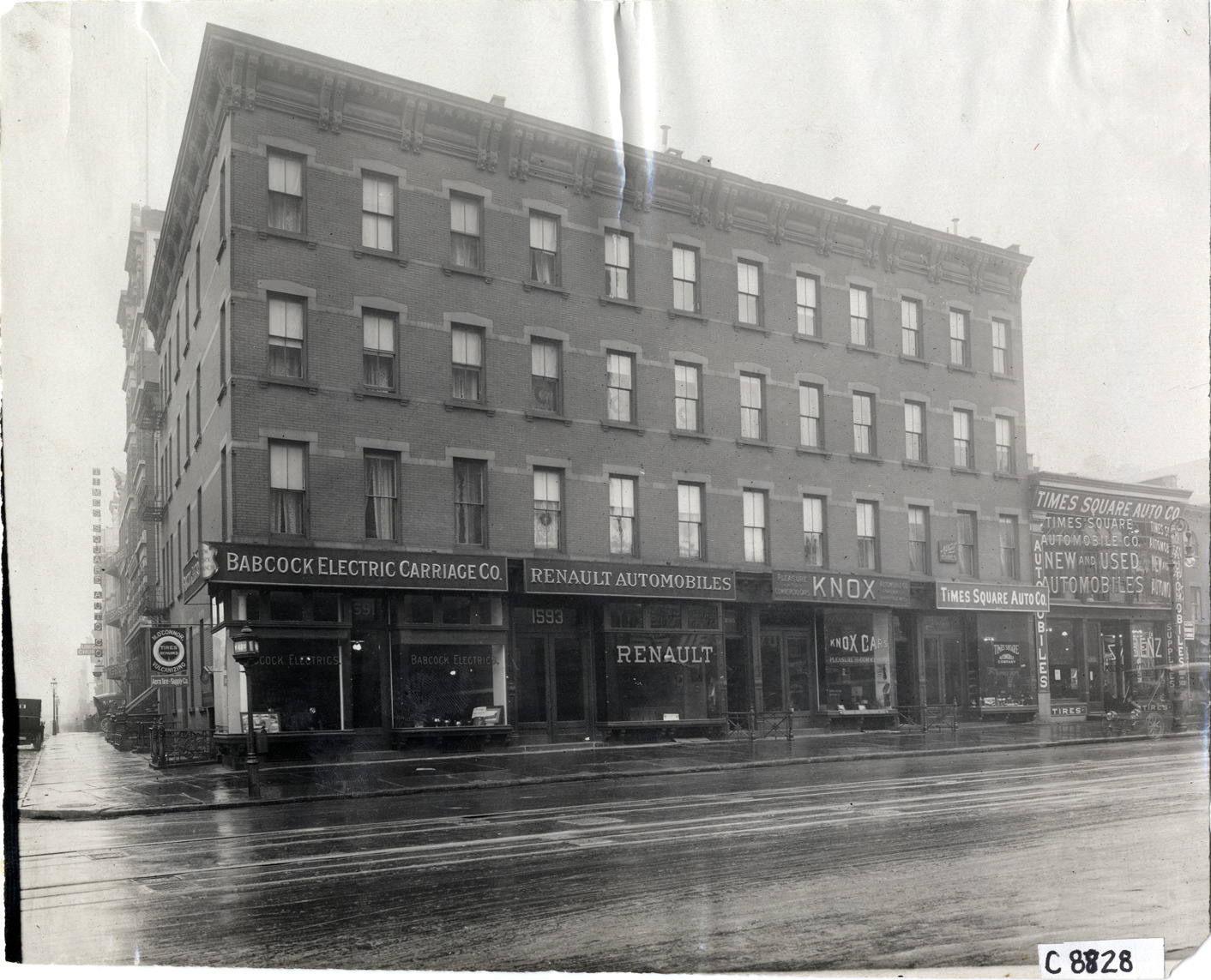 Favorite this☆ Automobile dealerships Description: View of storefronts for Babcock Electric Carriage Company, Renault Automobiles, Knox Automobile Company and Time Square Auto Company below multistory brick Italianate building. Handwritten on back: "Dealerships--Babcock Electric Co., 1908." Details Resource ID: na006283 Subject: Automobile dealers--New York (State)--New York Electric vehicle industry--New York (State)--New York Used car trade--New York (State)--New York Commercial buildings--New York (State)--New York Photographic prints Date Issued: 1908 Format: 1 photographic print ; 7.75 x 9.5 in. Member of: National Automotive History Collection Lazarnick Collection Filing Location: Dealerships #2 Negative Number: Negative #C8828 Rights: Physical rights are retained by DPL. Copyright is retained in accordance with U.S. copyright laws.