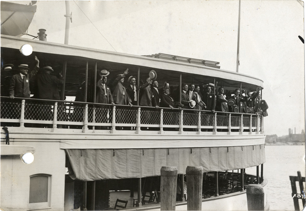 Favorite this☆ Hupmobile dealers on ferry during convention Description: View of men waving from deck of ferry during Hupmobile Dealers' Convention. Handwritten on back: "Dealerships--Hupmobile. Hupmobile Dealers' Convention." Details Resource ID: na006428 Subject: Hupp Motor Car Company Ferries--Michigan--Detroit Congresses and conventions--Michigan--Detroit Sales meetings--Michigan--Detroit Photographic prints Date Issued: Unknown year Format: 1 photographic print ; 4.5 x 6.5 in. Member of: National Automotive History Collection Lazarnick Collection Filing Location: Dealerships--Hupmobile #1 Rights: Physical rights are retained by DPL. Copyright is retained in accordance with U.S. copyright laws.