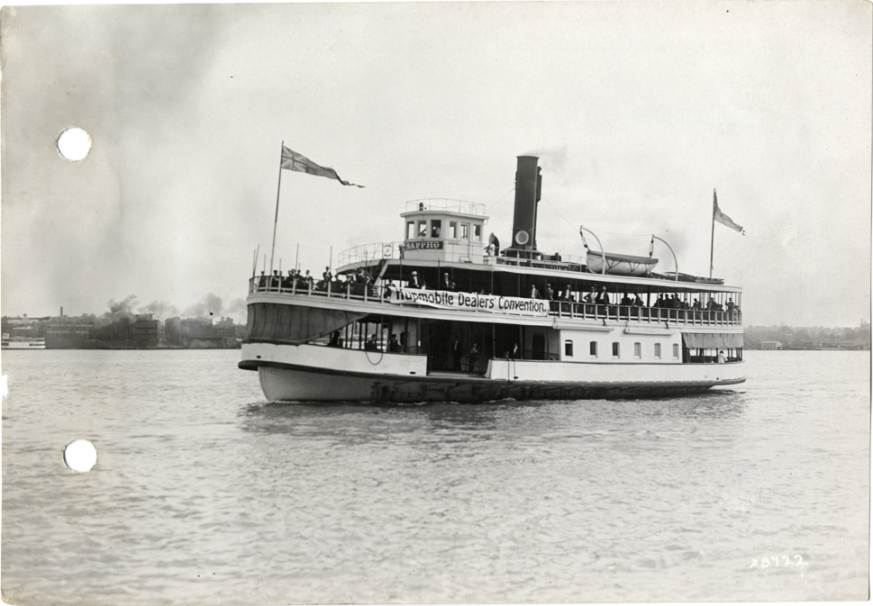 Favorite this☆ Hupmobile dealers on ferry "Sappho" during convention Description: View of passengers on ferry "Sappho" during Hupmobile Dealers' Convention. Handwritten on back: "Dealerships--Hupmobile. Hupmobile Dealers' Convention." Details Resource ID: na006450 Subject: Hupp Motor Car Company Ferries--Michigan--Detroit Congresses and conventions--Michigan--Detroit Sales meetings--Michigan--Detroit Photographic prints Date Issued: Unknown year Format: 1 photographic print ; 4.5 x 6.5 in. Member of: National Automotive History Collection Lazarnick Collection Filing Location: Dealerships--Hupmobile #2 Rights: Physical rights are retained by DPL. Copyright is retained in accordance with U.S. copyright laws.