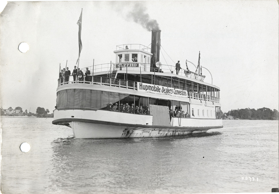 Favorite this☆ Hupmobile dealers on ferry "Sappho" during convention Description: View of passengers on ferry "Sappho" during Hupmobile Dealers' Convention. Handwritten on back: "Dealerships--Hupmobile. Hupmobile Dealers' Convention." Details Resource ID: na006460 Subject: Hupp Motor Car Company Ferries--Michigan--Detroit Congresses and conventions--Michigan--Detroit Sales meetings--Michigan--Detroit Photographic prints Date Issued: Unknown year Format: 1 photographic print ; 4.5 x 6.5 in. Member of: National Automotive History Collection Lazarnick Collection Filing Location: Dealerships--Hupmobile #2 Rights: Physical rights are retained by DPL. Copyright is retained in accordance with U.S. copyright laws.