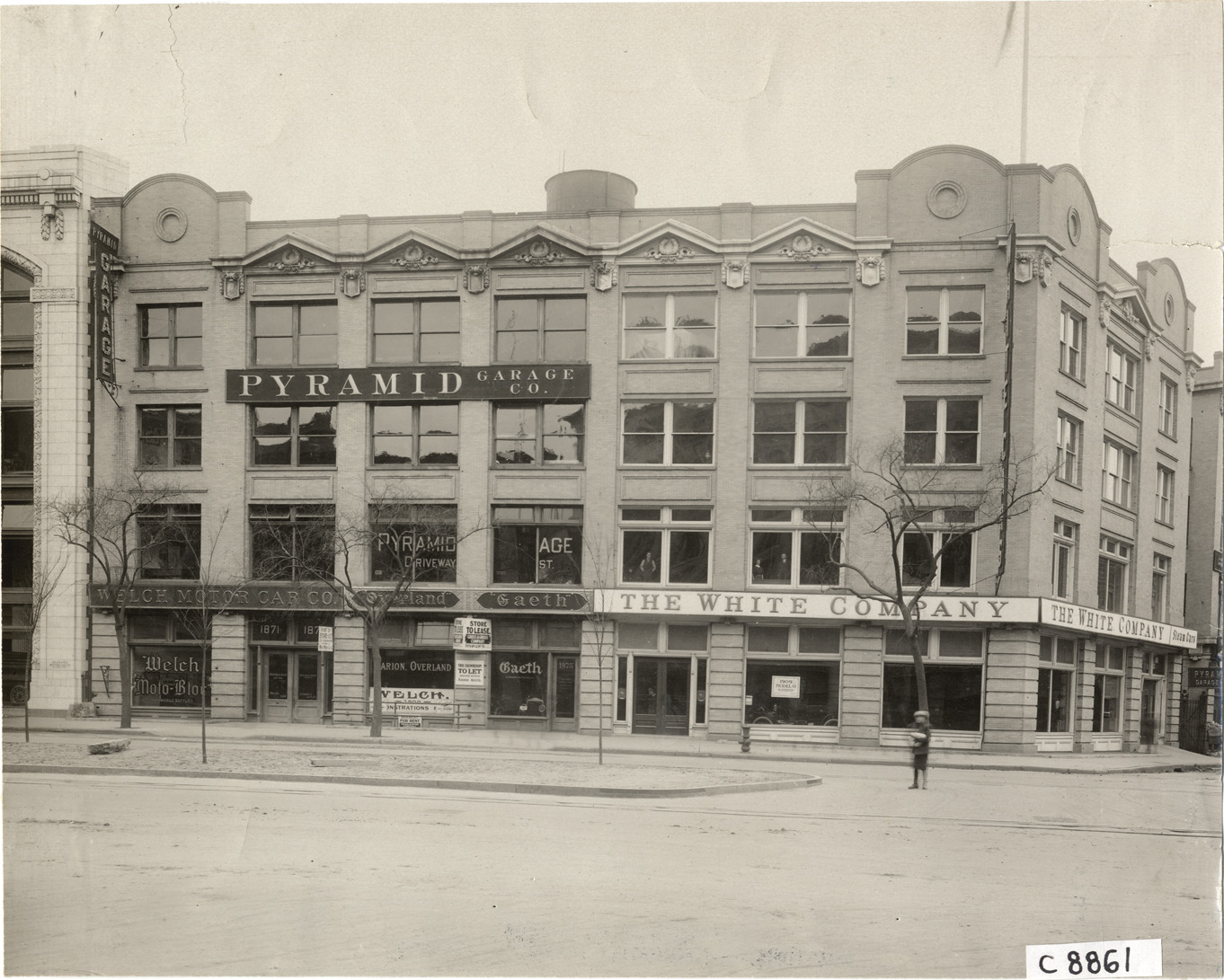Favorite this☆ White Company building Description: View of White Company building on corner; building adjacent to Pyramid Garage Co. Sign on building: "The White Company, steam cars." Handwritten on back: "Dealerships--White, 1908." Details Resource ID: na006482 Subject: Automobile dealers--New York (State)--New York Commercial buildings--New York (State)--New York White Company (New York, N.Y.) Photographic prints Date Issued: 1908 Format: 1 photographic print ; 7.25 x 9 in. Member of: National Automotive History Collection Lazarnick Collection Filing Location: Dealerships--White Negative Number: Negative #C8861 Rights: Physical rights are retained by DPL. Copyright is retained in accordance with U.S. copyright laws.