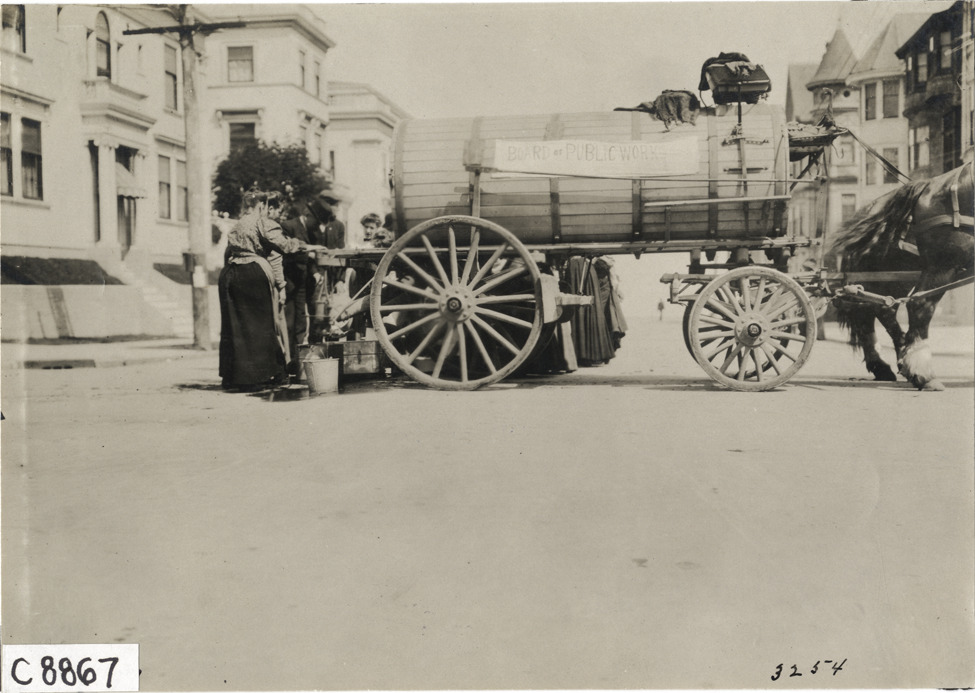 Horse-drawn water wagon, 1906 San Francisco earthquake and fire