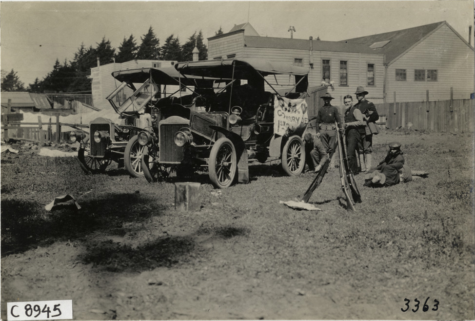 Soldiers with automobiles, 1906 San Francisco earthquake and fire