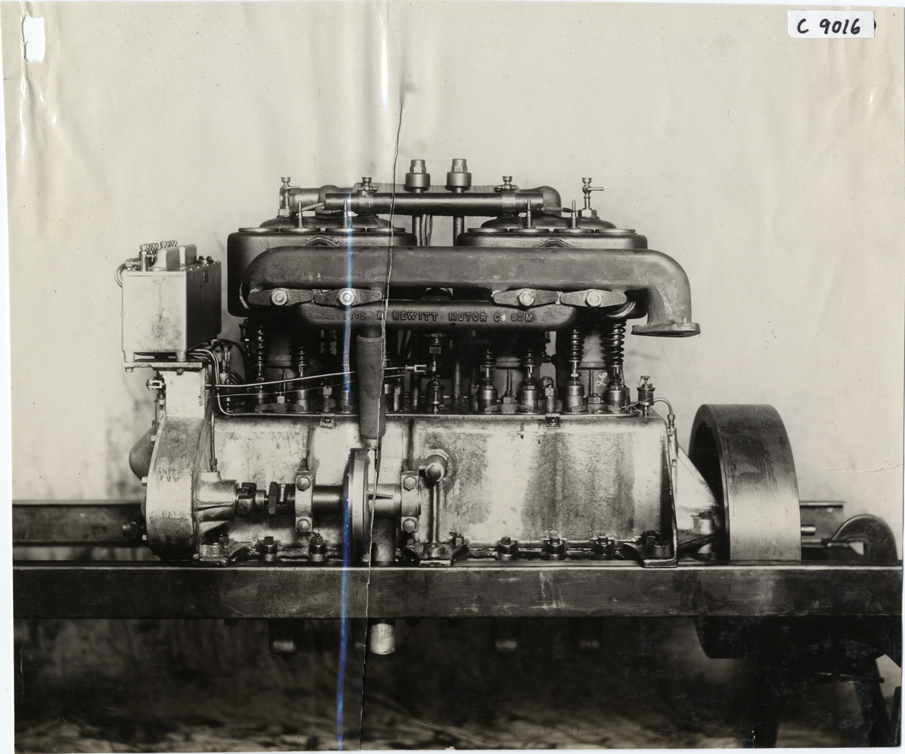 Favorite this☆ Hewitt automobile engine Description: Close-up view of Hewitt engine for car. Embossed on side of motor: "3605A, Hewitt Motor Co., 80M." Handwritten on back: "Engines--Hewitt, 1908." Details Resource ID: na006715 Subject: Automobiles--Motors Photographic prints Date Issued: 1908 Format: 1 photographic print ; 7.5 x 9 in. Member of: National Automotive History Collection Lazarnick Collection Negative Number: Negative #C9016 Rights: Physical rights are retained by DPL. Copyright is retained in accordance with U.S. copyright laws.